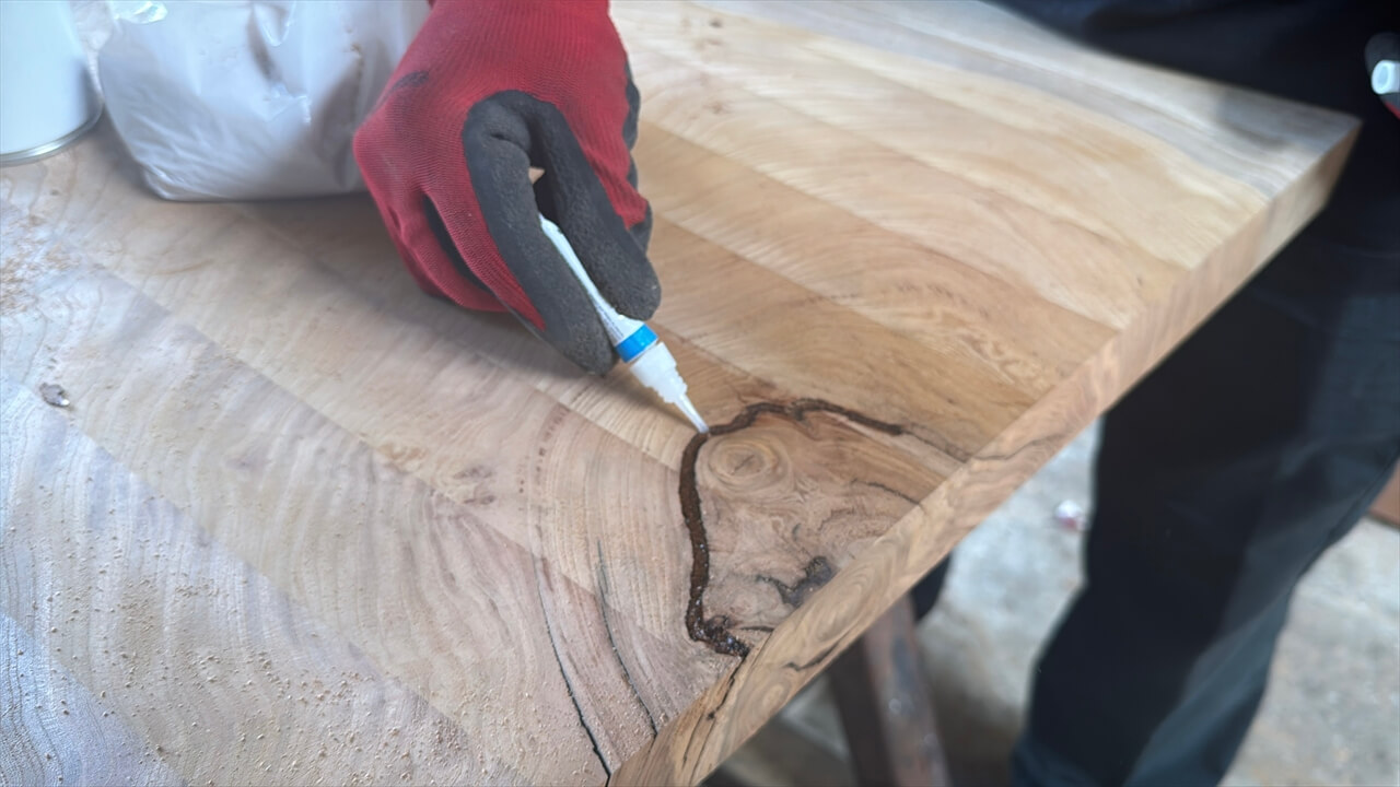 割れたところを補修していきます。見た目的に良さそうなところは補修せずにそのまま仕上げ得ることもあります。