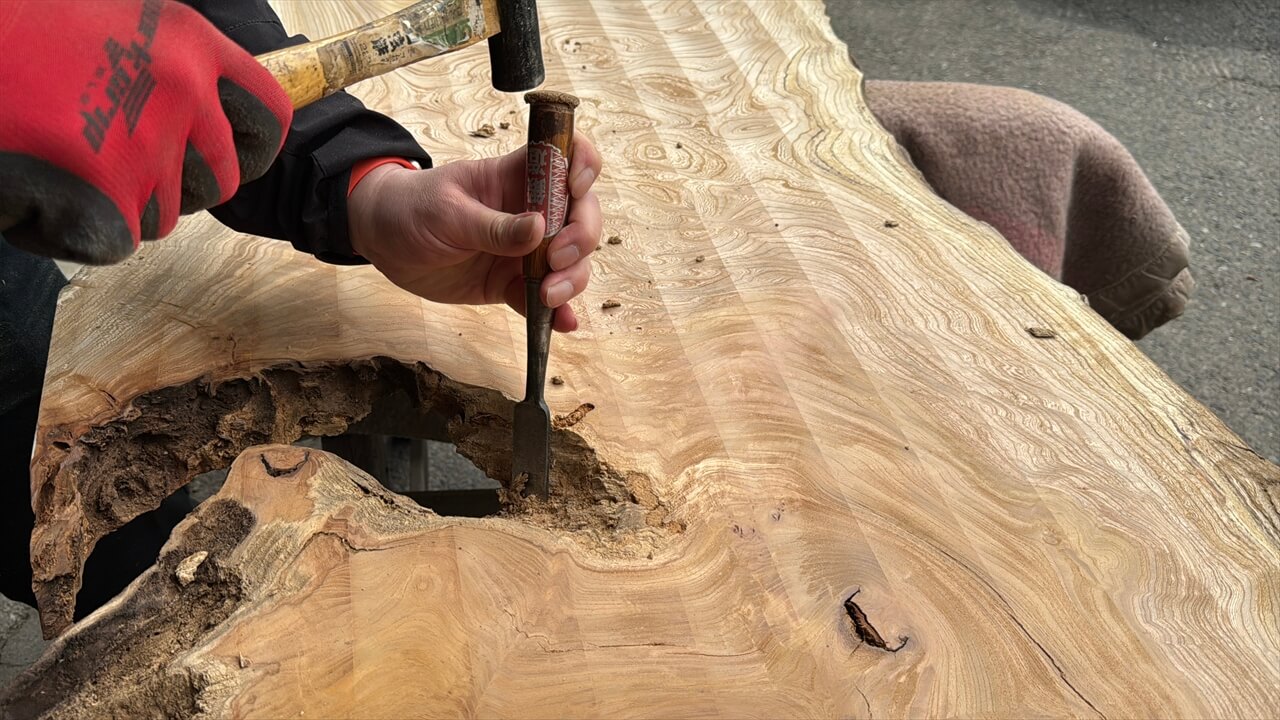 「朽ちても美しい」ケヤキの存在感──野趣あふれる一枚板