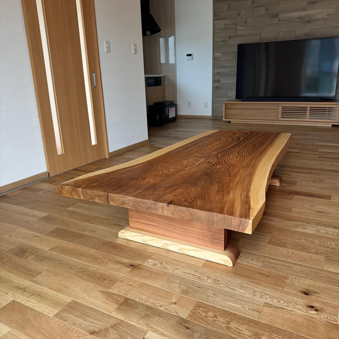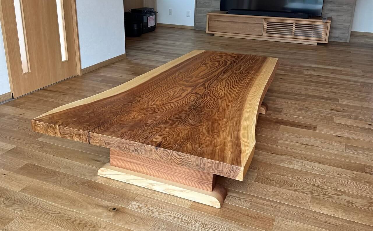 新しく建てられたお住まいで、こちらの一枚板を”低めのローテーブル(座卓)”としてお使いになるとのこと。