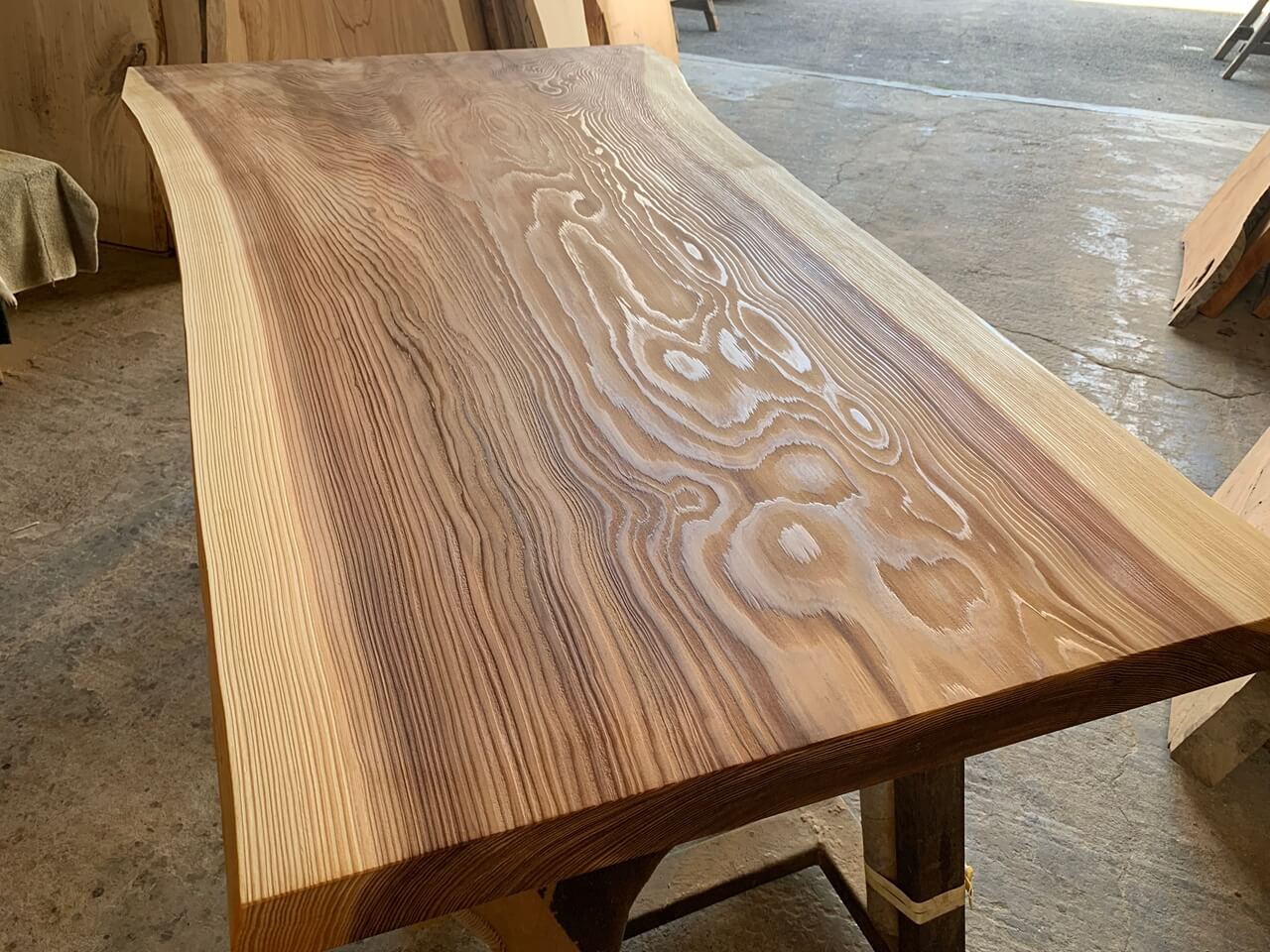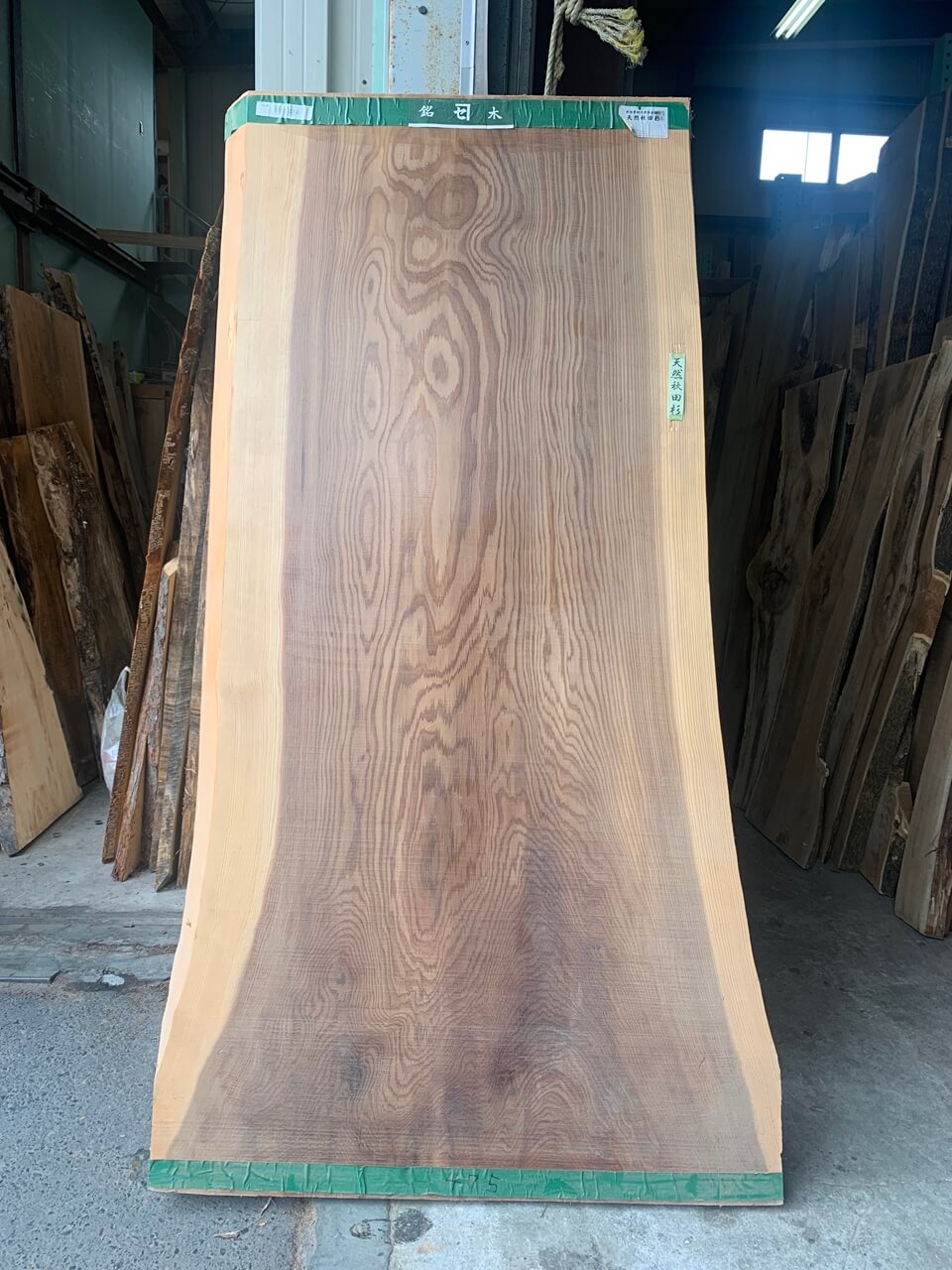 この画像の時点では、秋田の市場から仕入れたばかりで製材後まだまもなくでまだしっかり乾燥されていない状態でした。