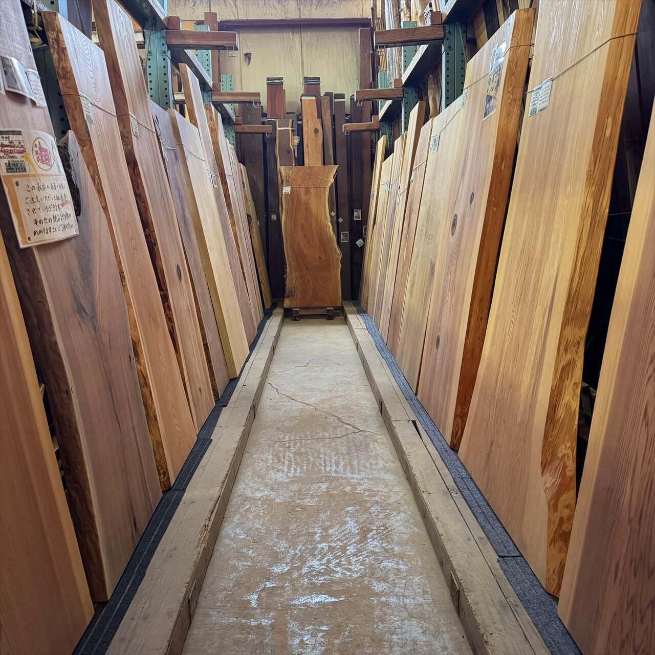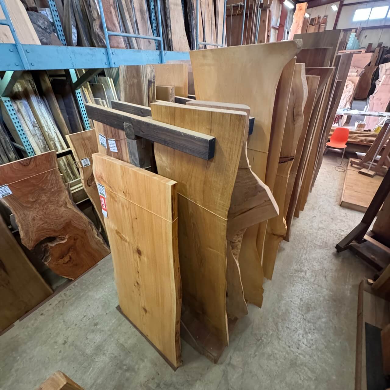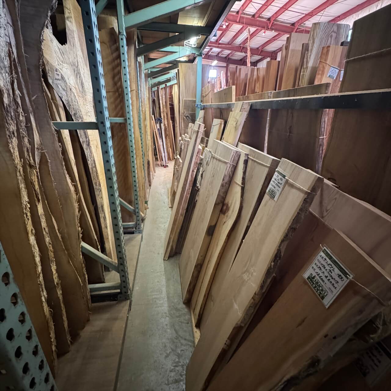 こんな感じに素材の一枚板が所狭しと保管されていました。↓