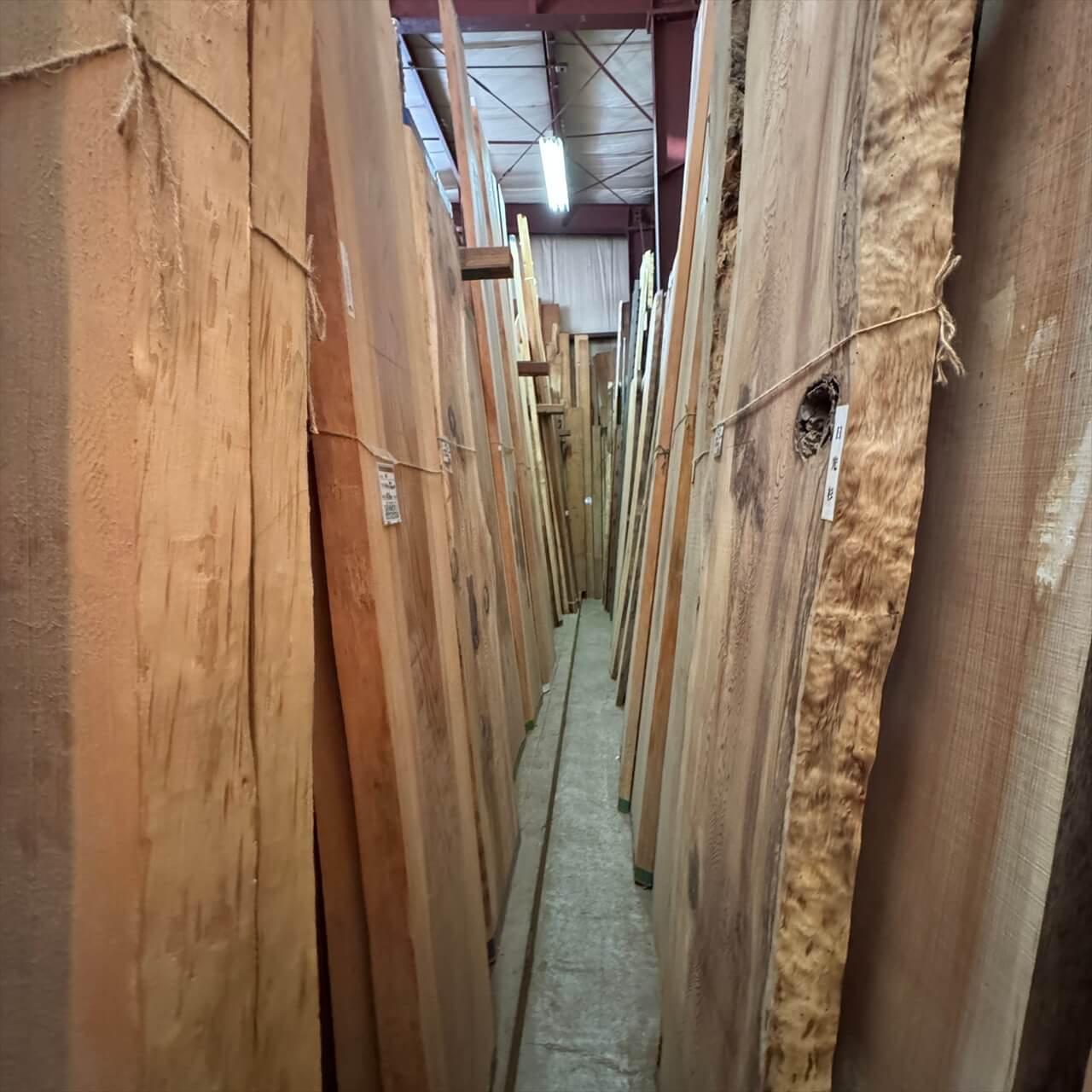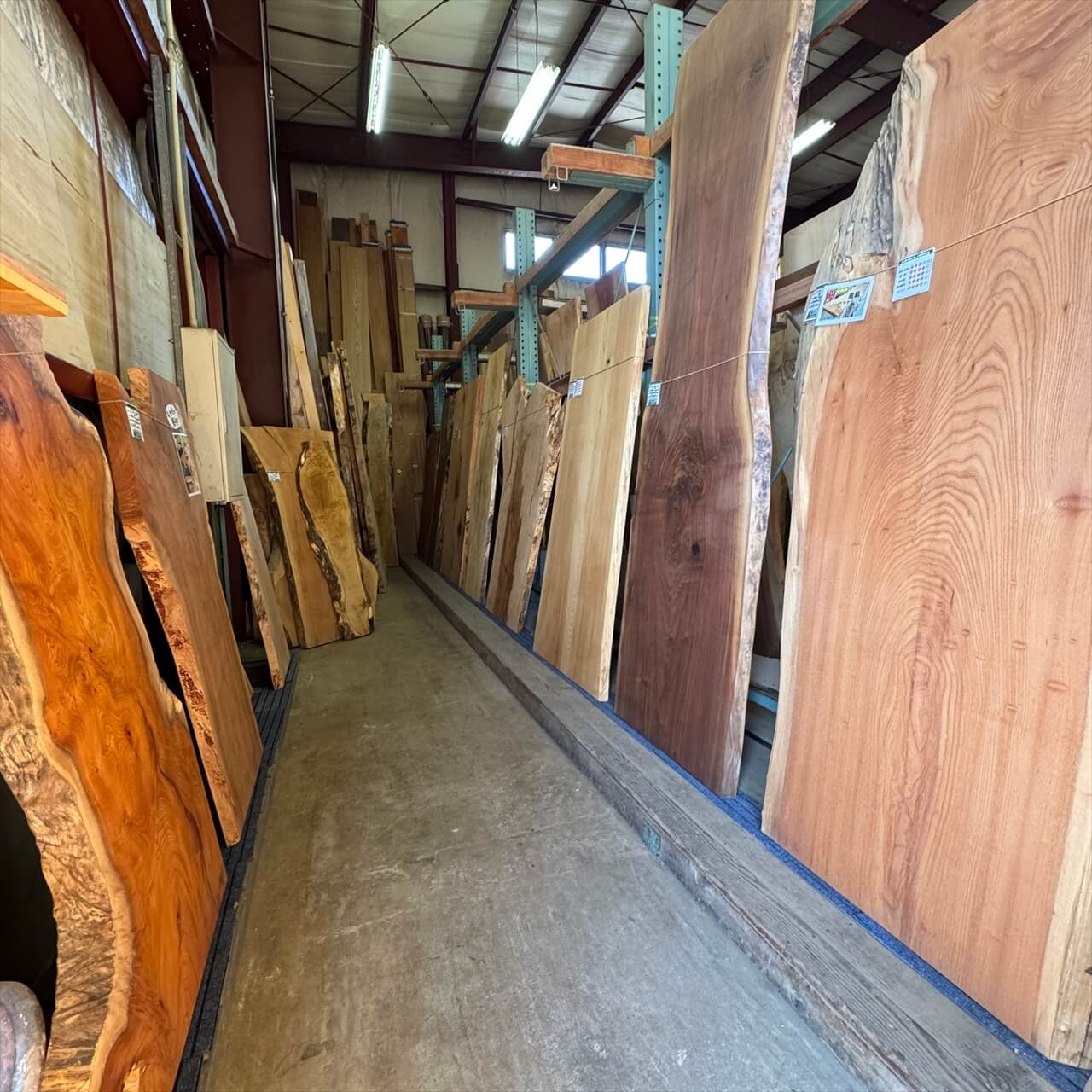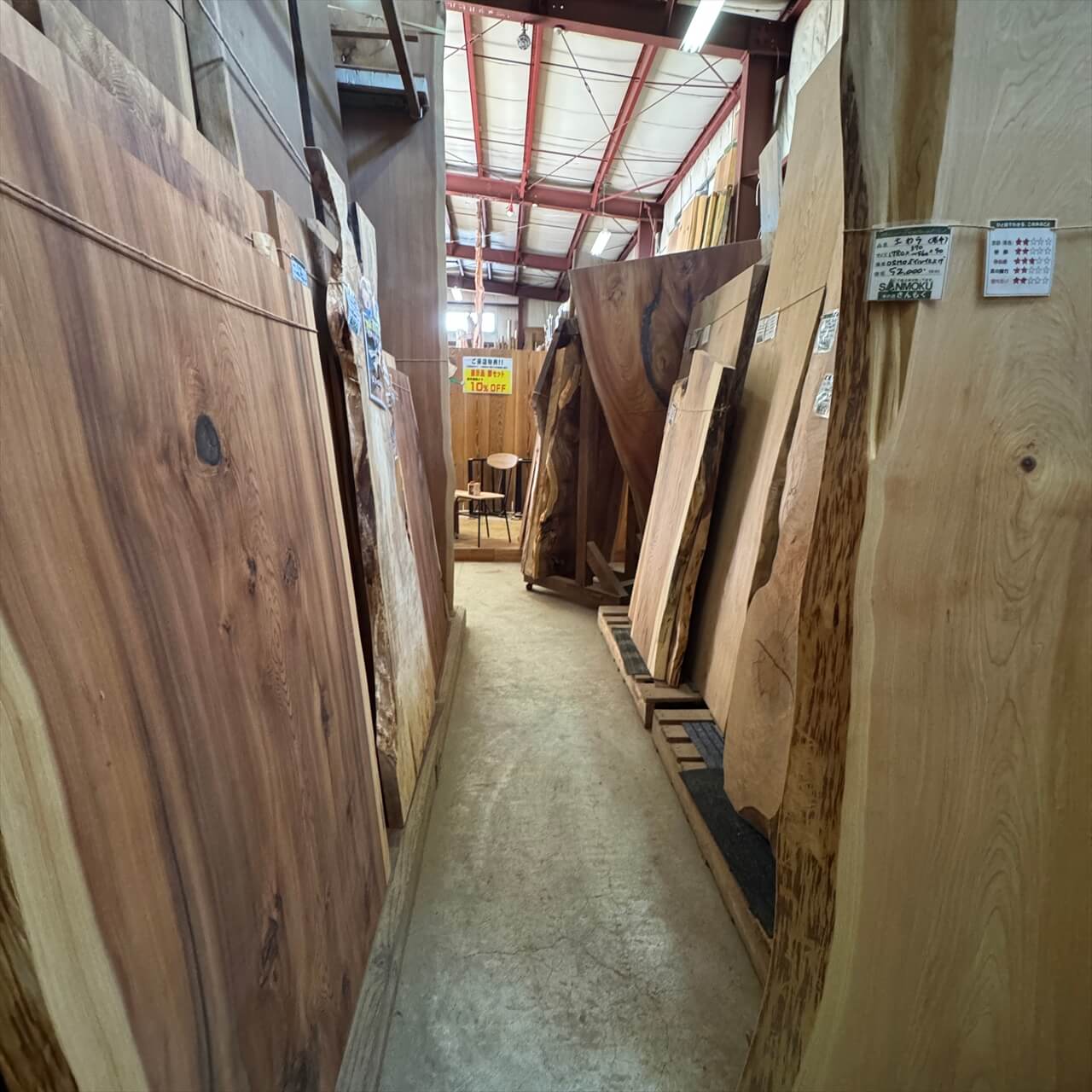 こんな感じに素材の一枚板が所狭しと保管されていました。↓