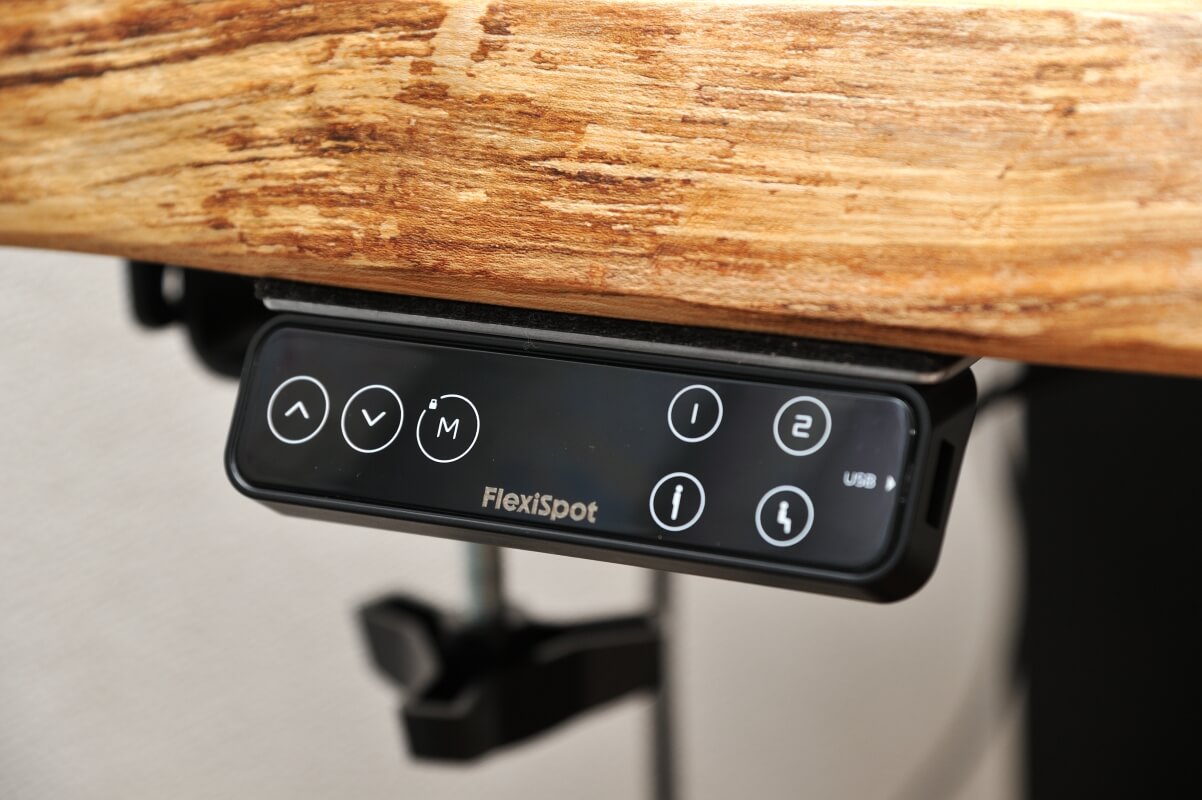 今回こちらの一枚板をご購入いただいた、お客様がご自分で自動昇降アイアン脚「Flexispot E7HB 」を一枚板に取り付けられました。