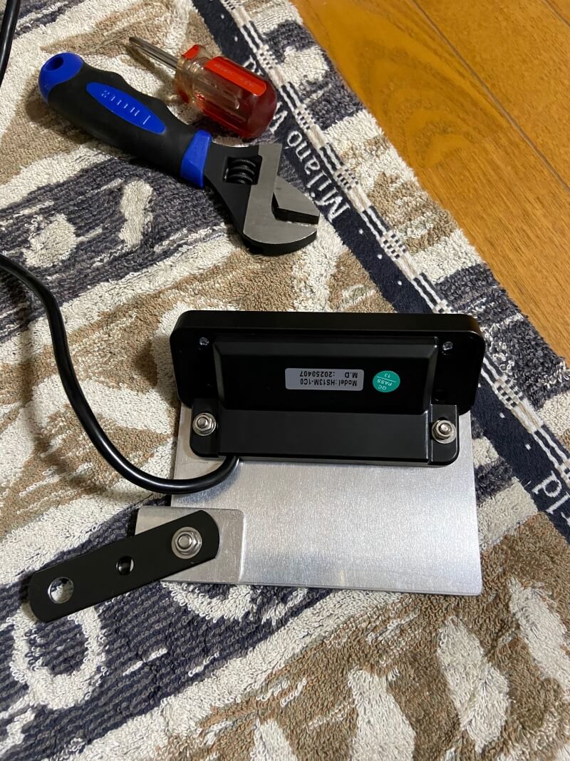 コントローラーは、2ミリ厚のアルミ板(以前DIYした際の残材があったのでそれを利用)を切って穴をあけ、市販の金属ステーと組み合わせて、クランプとサポートプレート(アングル材)の間に入れて固定。