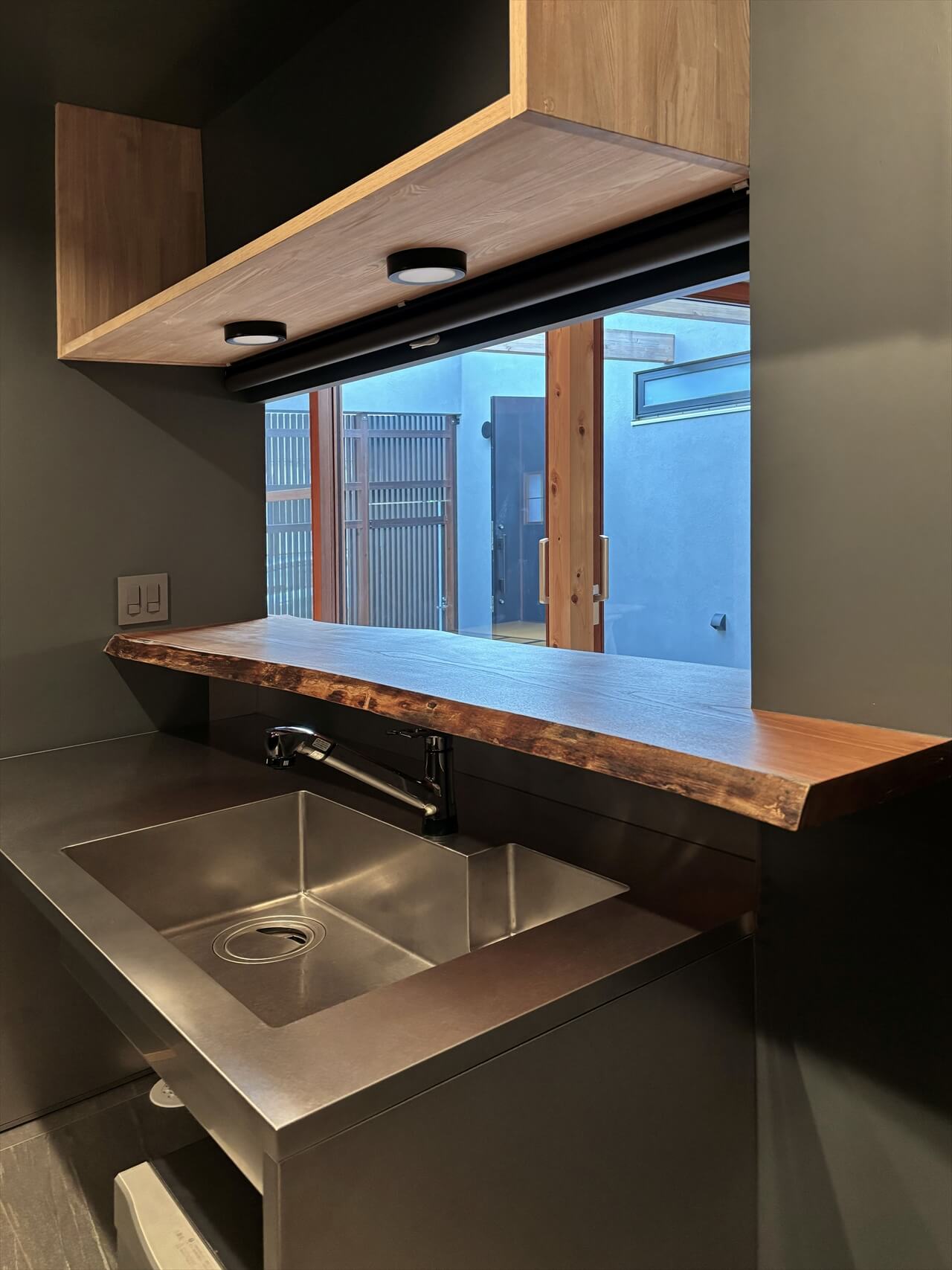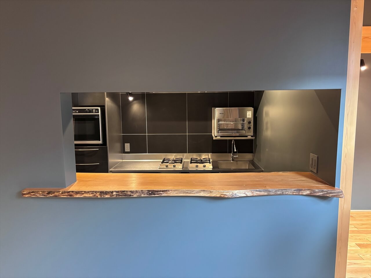 今回のお客様は気に入った一枚板をご購入されて、キッチンカウンターに使っていただきました。