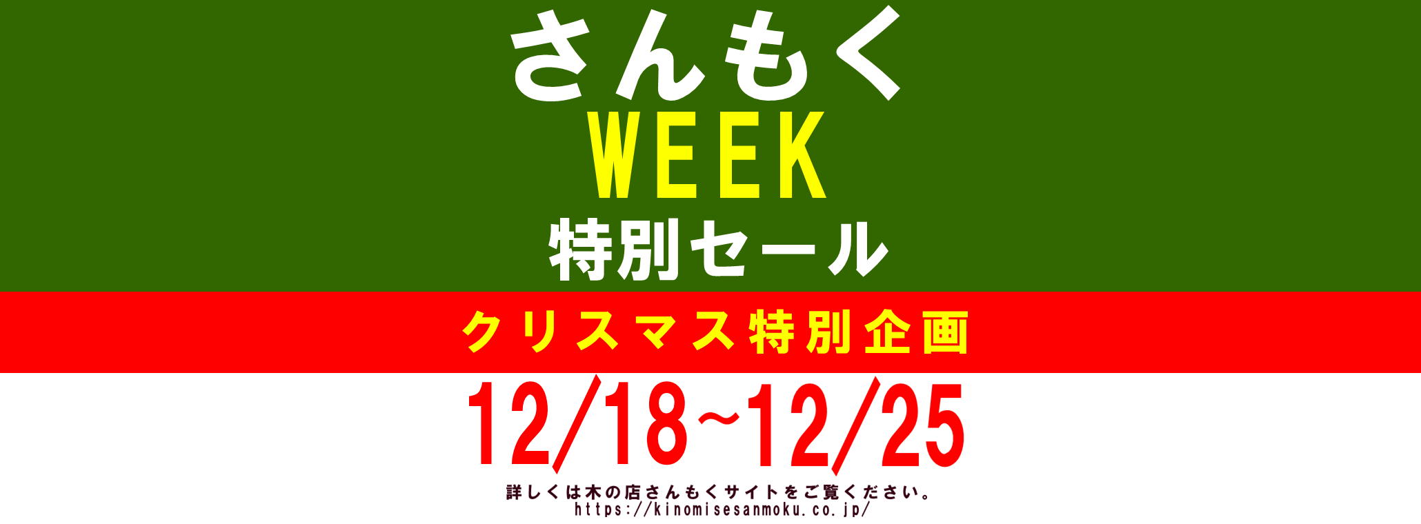毎月恒例の「さんもくウィーク」、今月は 12月18日(木)〜12月25日(木) の8日間で開催します!