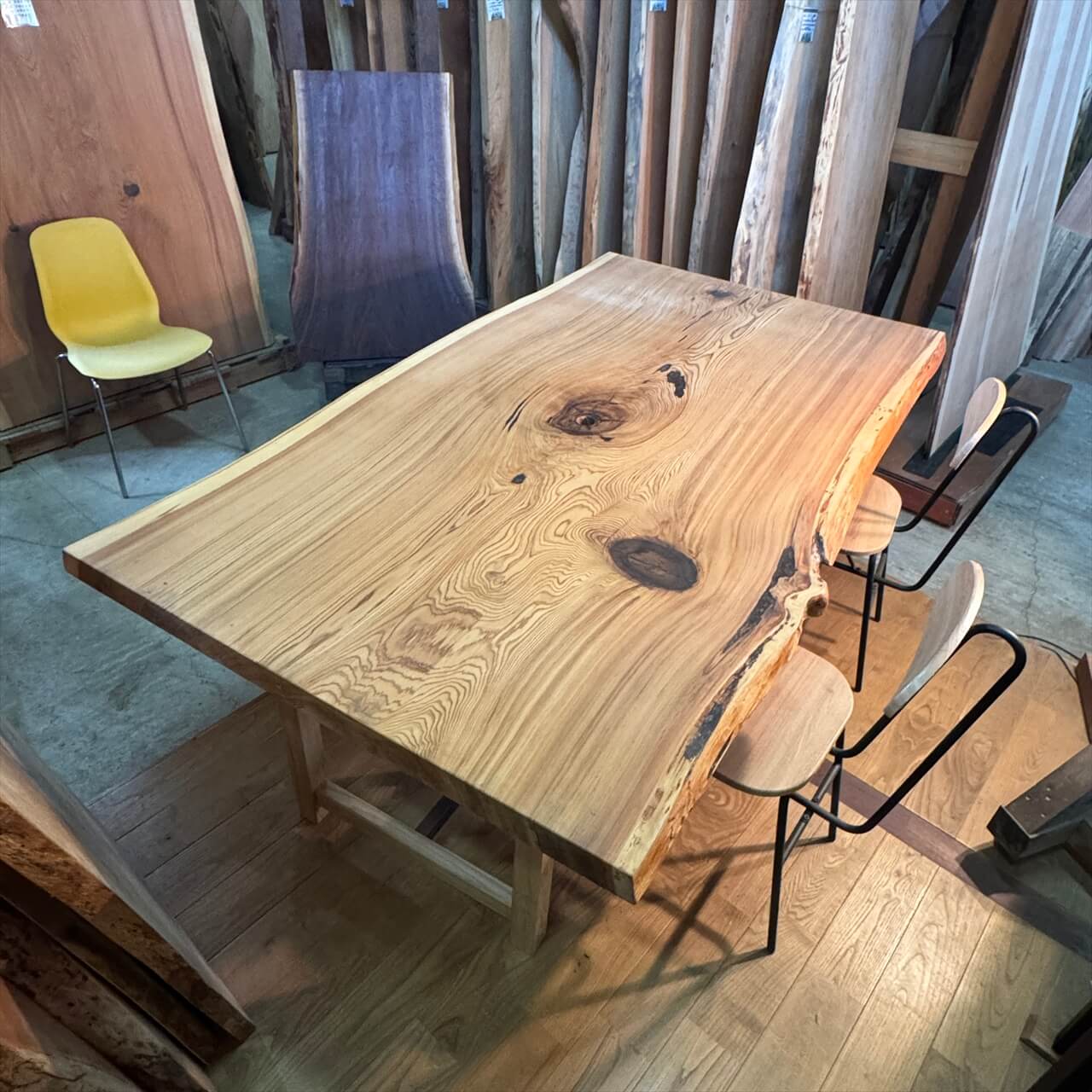 秋田の市場でこの一枚板に出会ったのは、もう10年以上前になります。製材された状態の荒木素材で出品されていた一枚板からは、遠目からでも独特な色味と雰囲気を醸し出していました。