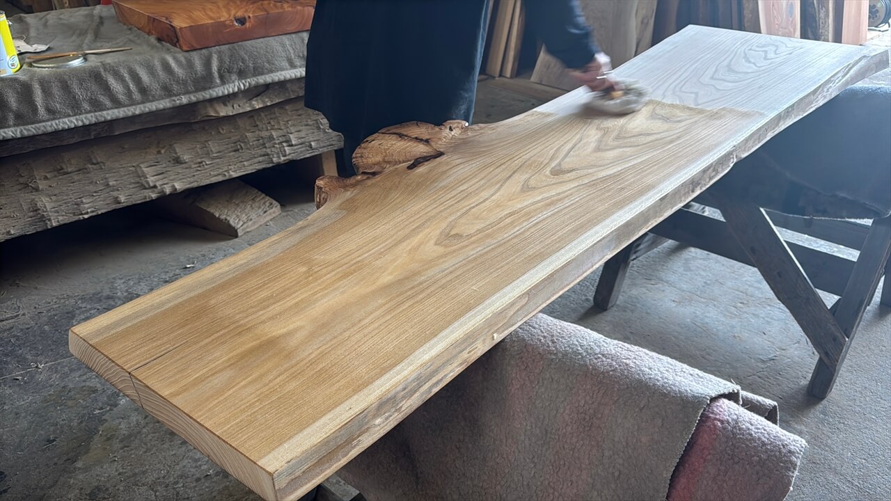 オイル塗装は毎回塗るたびに、その一枚板の表情がグッと見えてきて「こんな木目がでてきたのか!?」といつも驚きで、飽きることがありません。