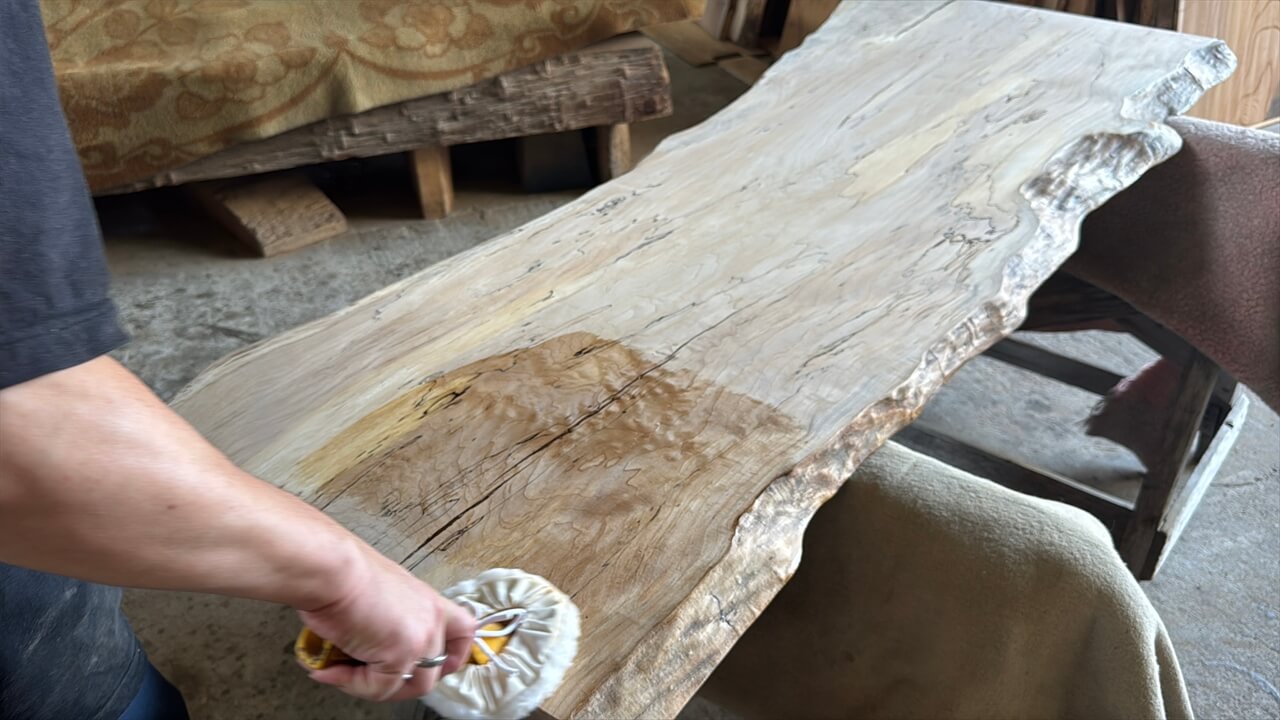 オイルを塗ると、カエデの淡い木目があらわれてきました。