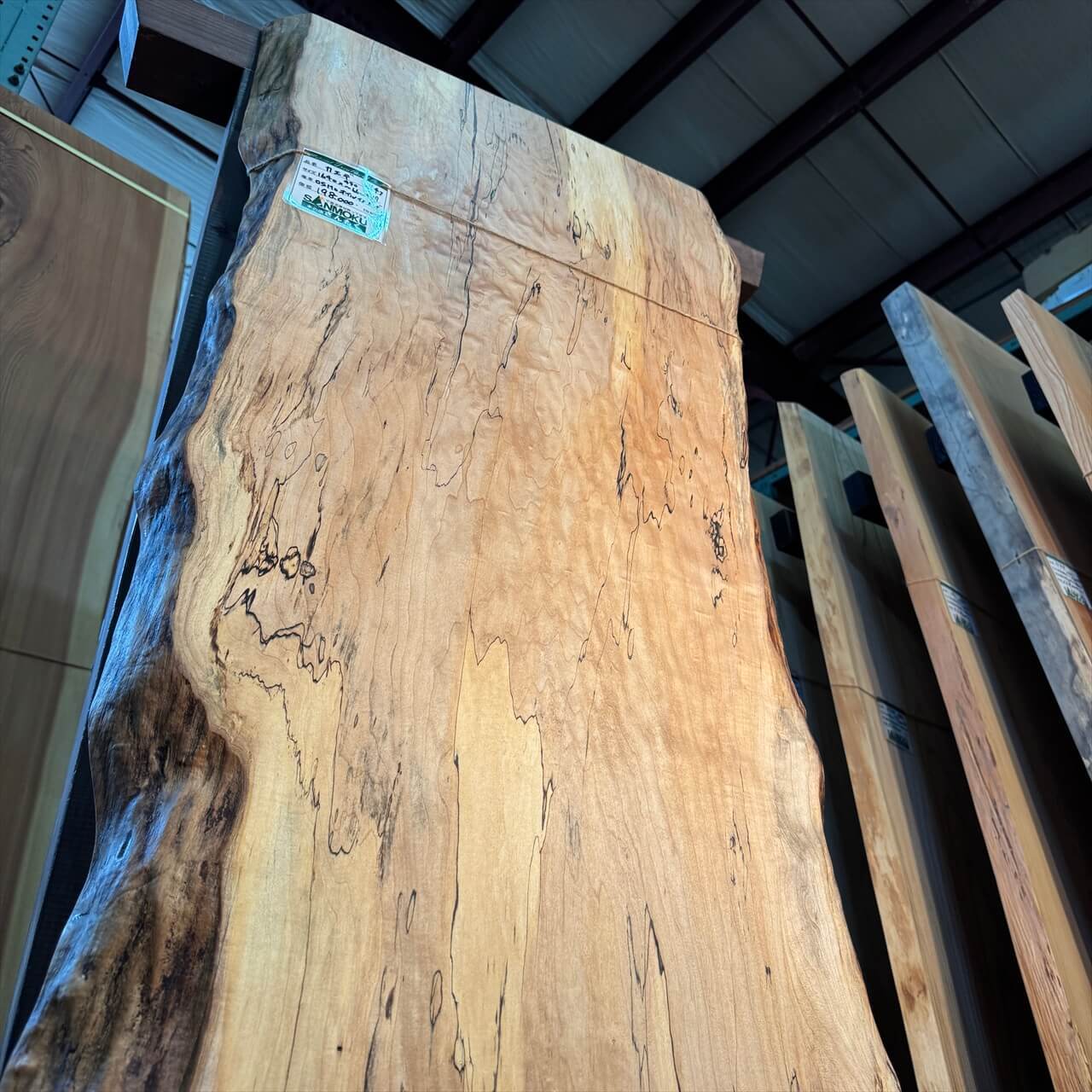 波打った耳と青シミ&スポルテッド一枚板