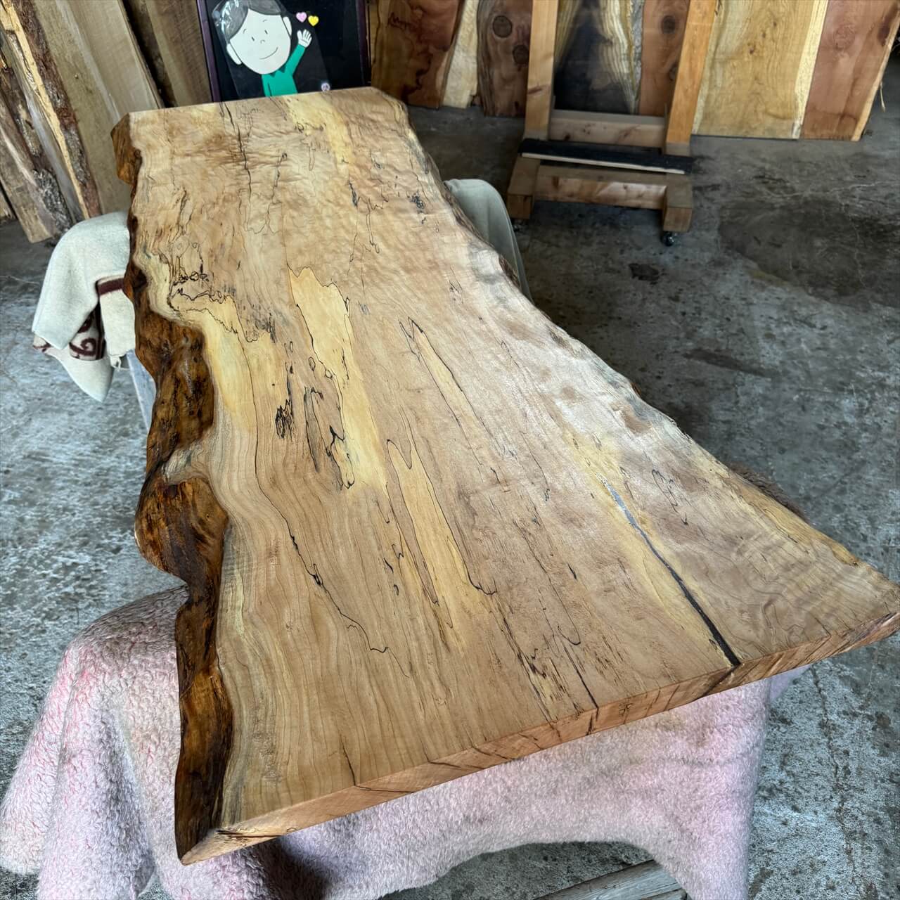 スポルテッド模様と青シミが織りなす風景がジワる!いつまでも見ていたくなる「かえで」一枚板をご紹介します【在庫あり】