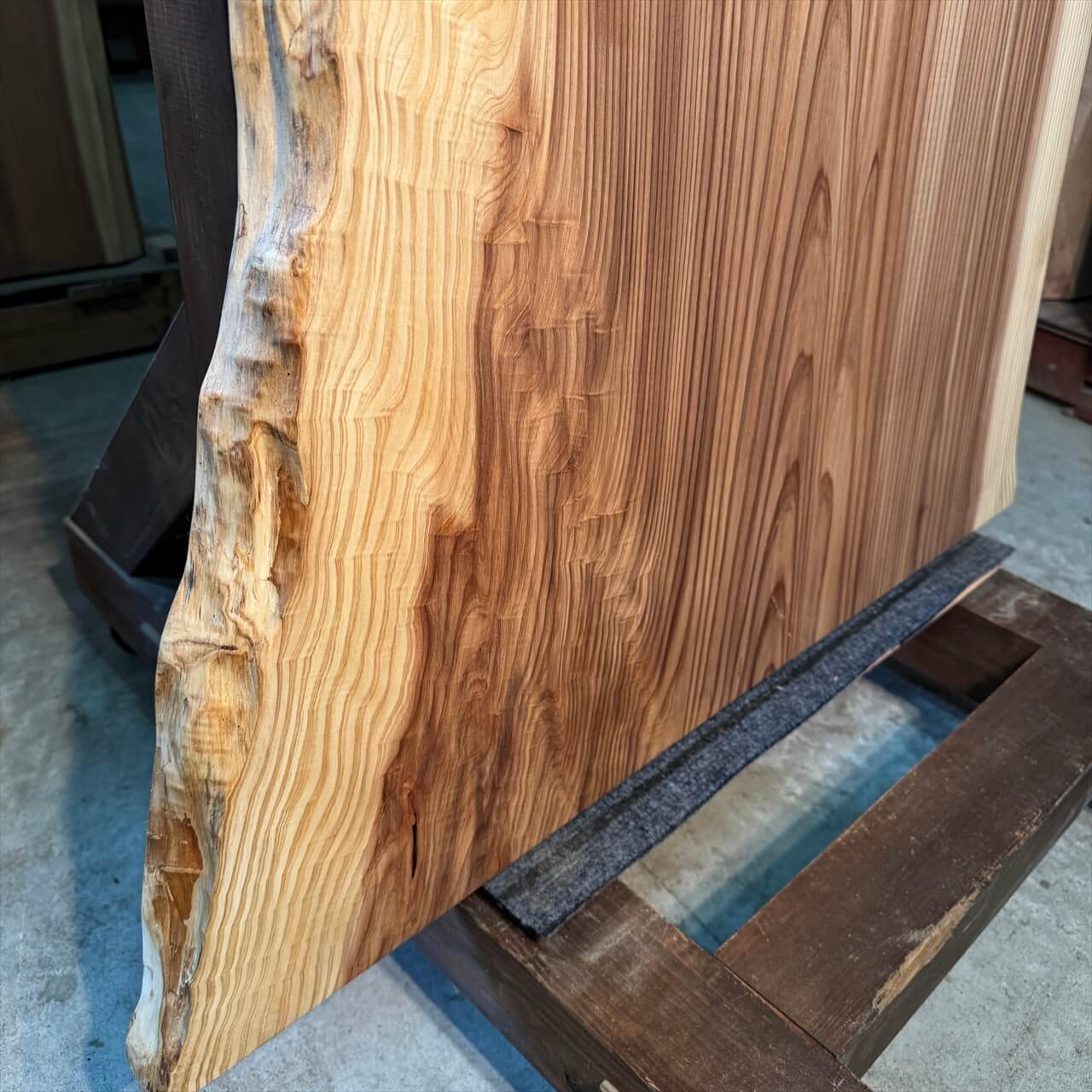 このすぎは、ある意味「一枚板初心者」の方に特におすすめしたくなる一枚板です。一枚板の世界に初心者も上級者もないのですが、「無垢材がどんなものなのか」を理解するにあたって、「最初にお付き合いする一枚」として特に適した板ではないか、と思わされるのです。