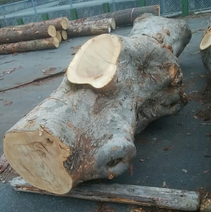 地元の原木市場で見たときは遠目からも存在感ありありで、まさに異形でゴツゴツした原木で、ここからどんな木目が現れるのかみたい衝動に駆られ、「これは絶対欲しい!」と強く思い、頑張って落札した思い出ある原木です。