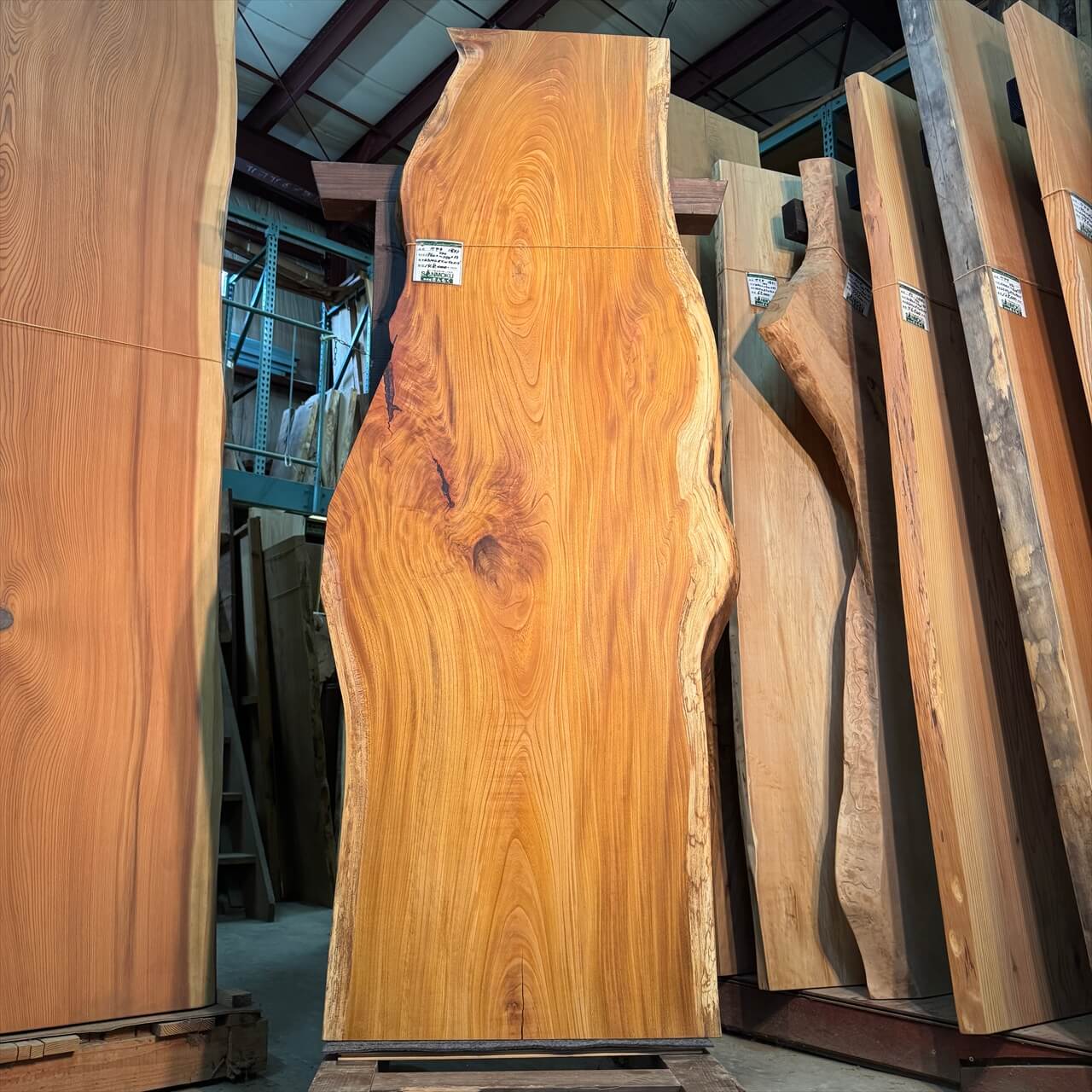 原木から一枚板を製材して、そこから数年間を自然乾燥のために倉庫に保管していました。