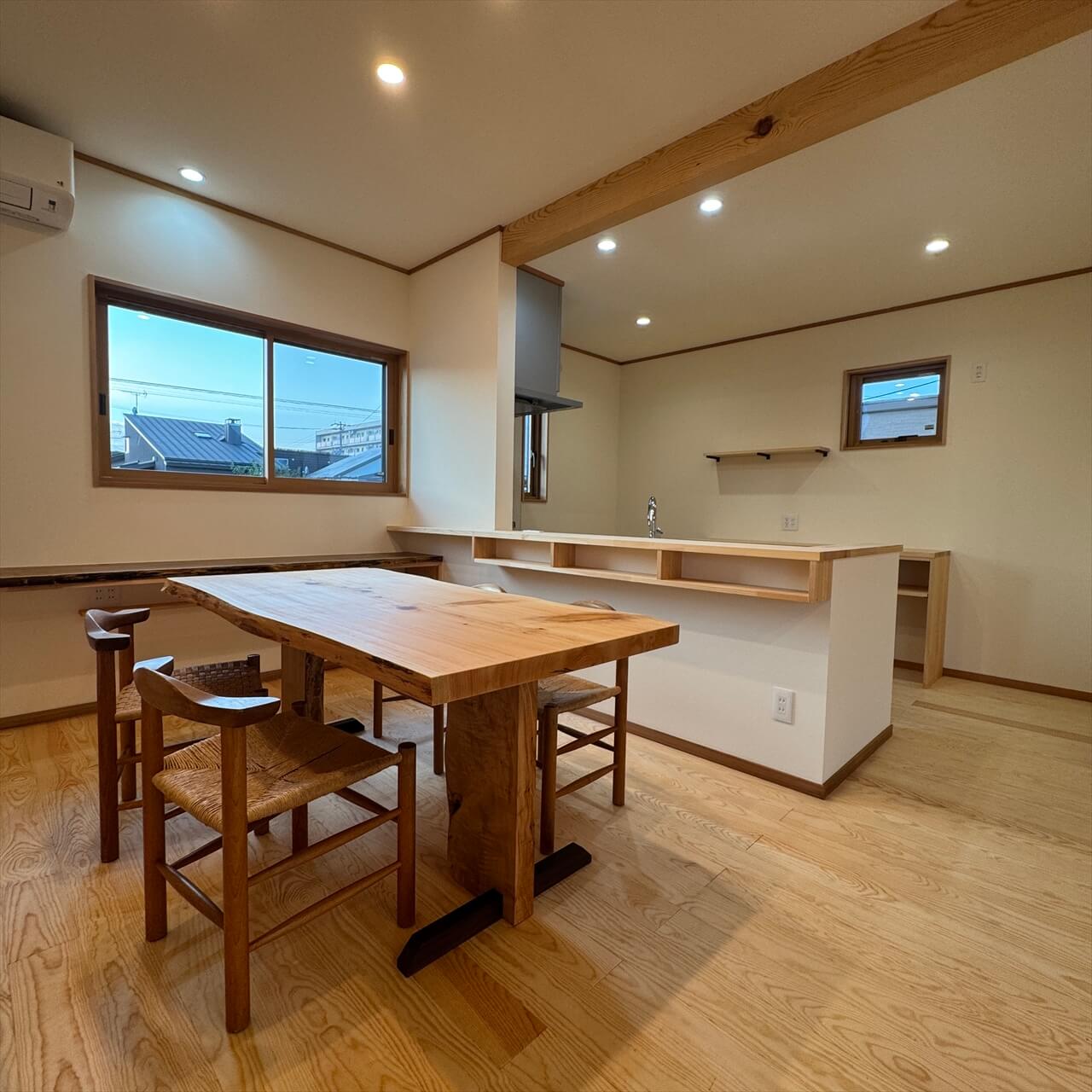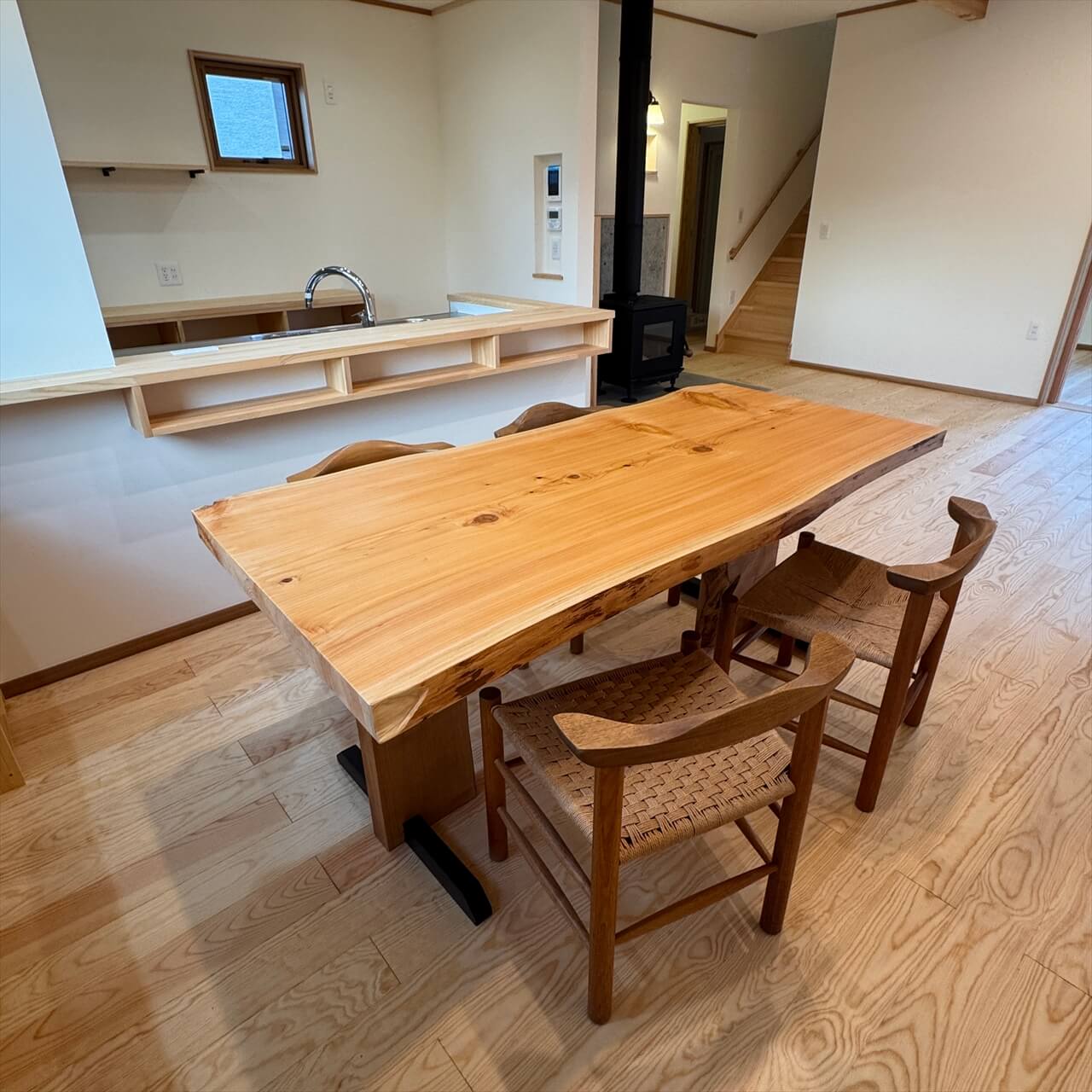 【お客様より】ダイニングに岩手県産サワラ一枚板&オリジナル脚を使っていただきました。