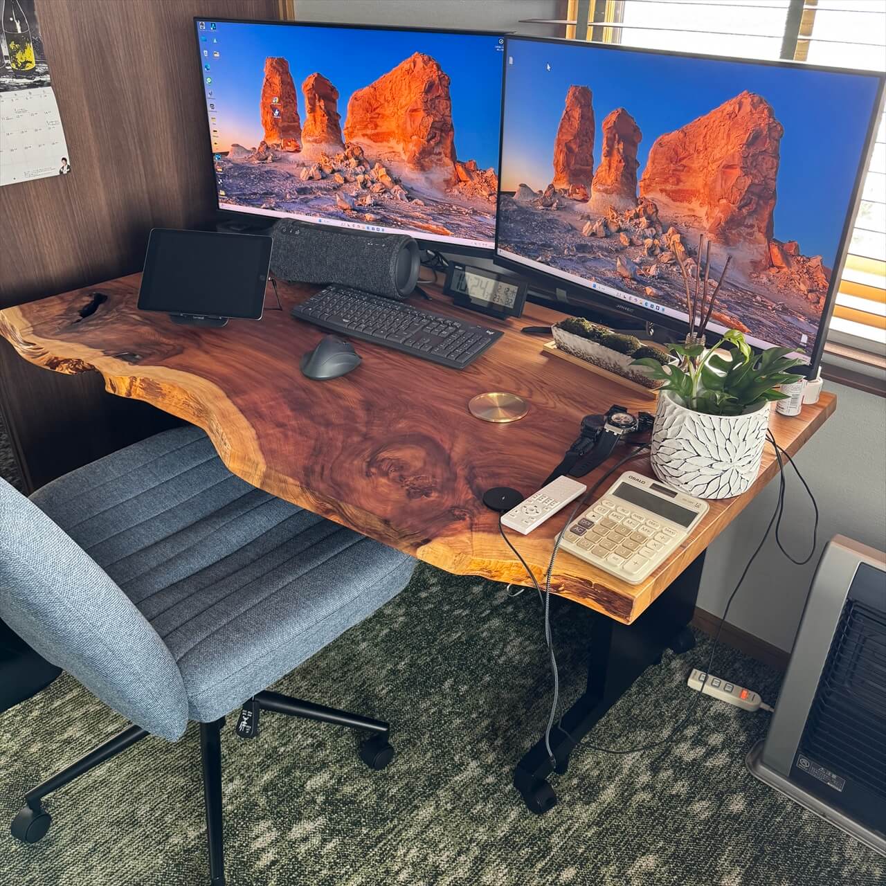 岩手県産クリ一枚板 × Flexispot自動昇…