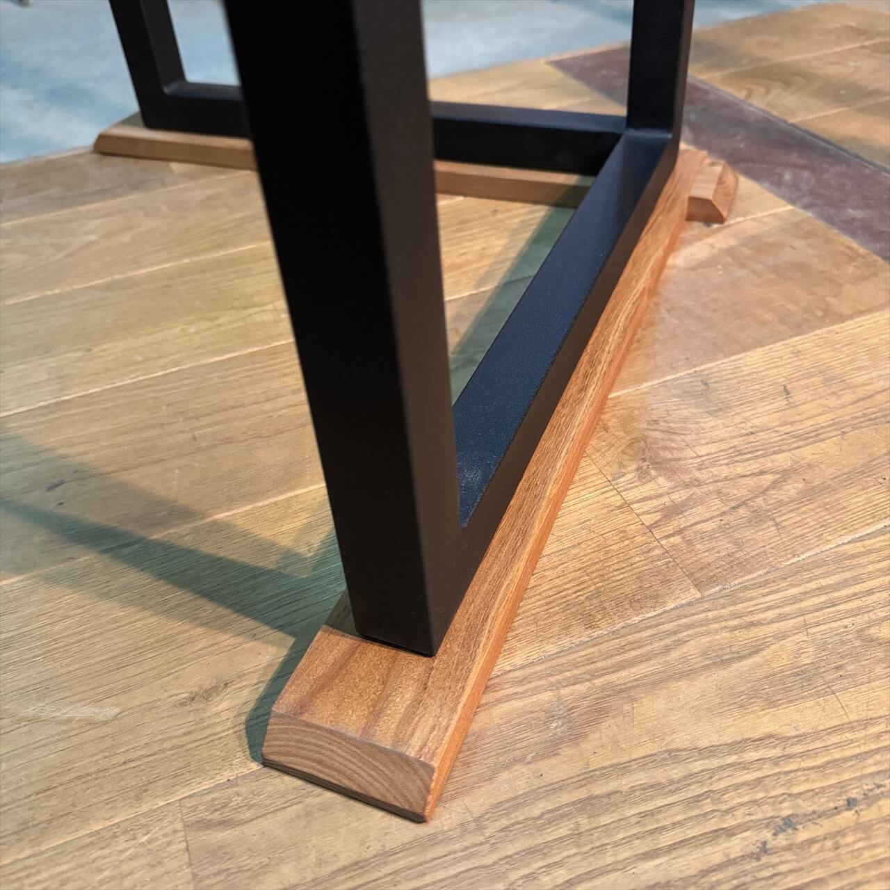 鉄の力強さに木の温もりが加わることで、天板の存在感をより際立たせてくれます。