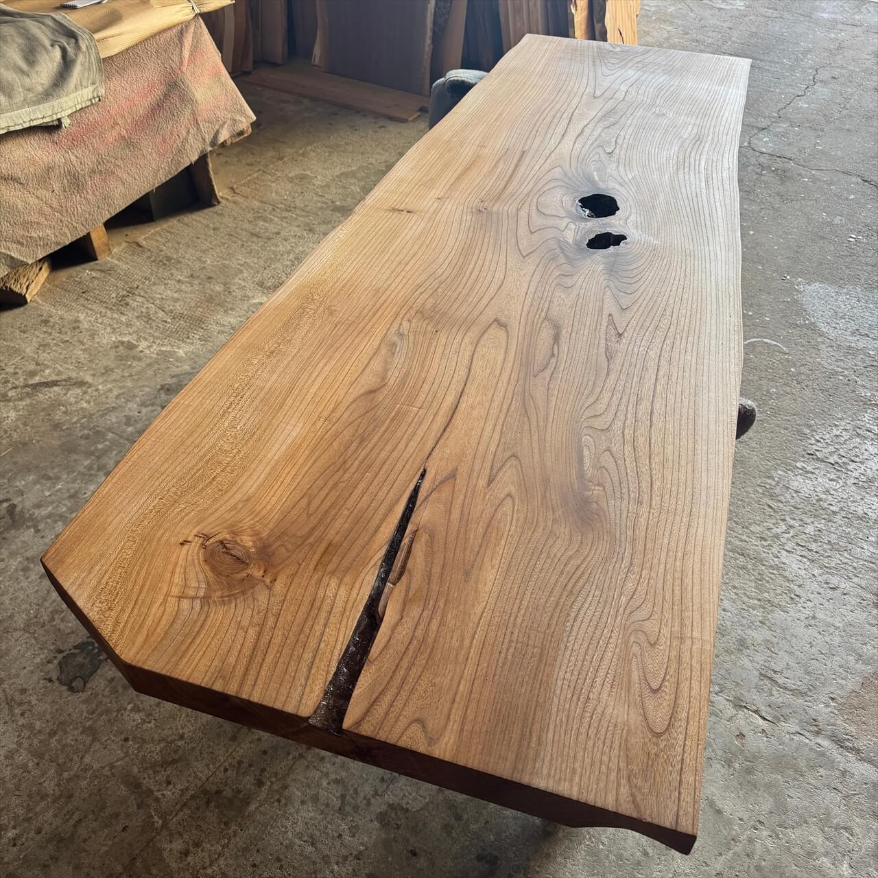 ニレ一枚板【岩手】 2150×480~740×55㎜【オイル塗装 仕上げ済み】
