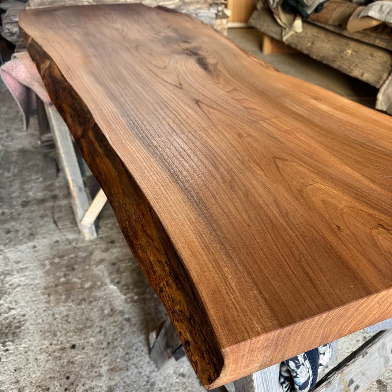 PCデスク用一枚板◇”耳”で選ぶ一枚板◇存在感ある一枚板◇岩手の一枚板カウンター用一枚板テレビボード用一枚板テーブル天板ニレ一枚板【植物油オイル仕上げ】手洗いカウンター用一枚板