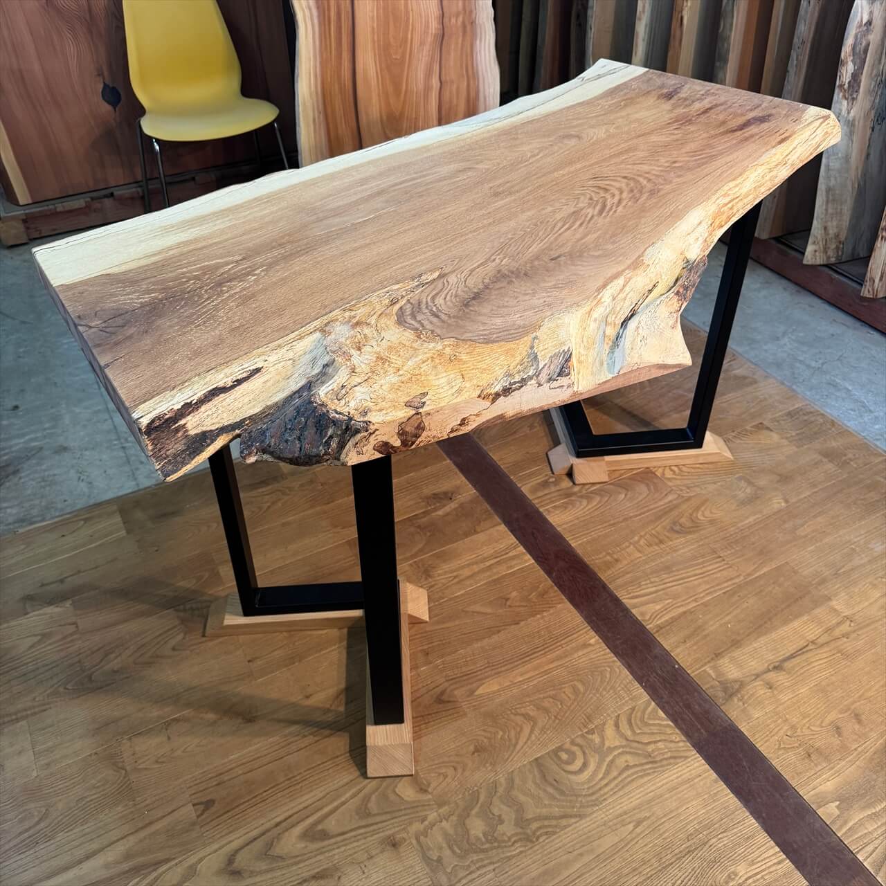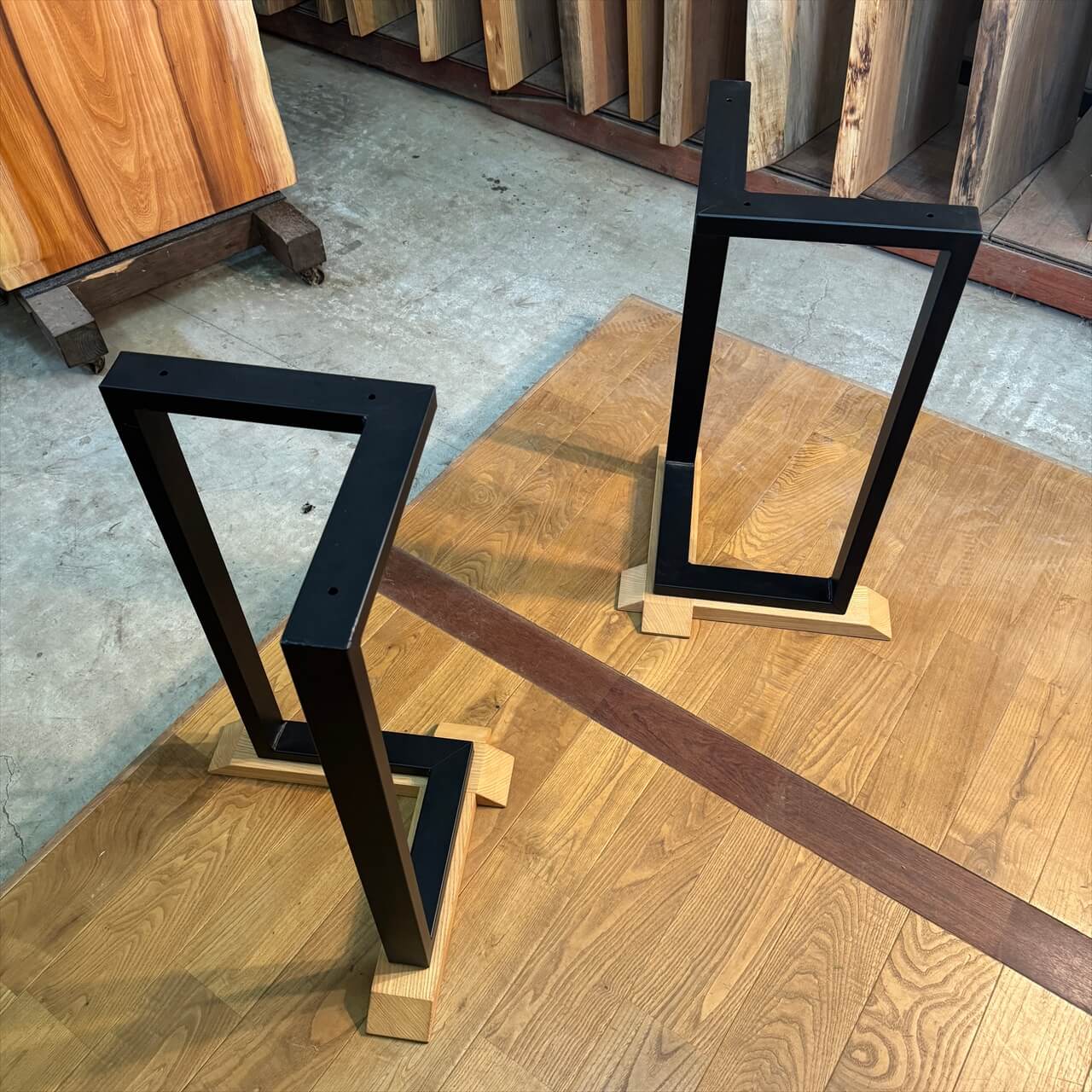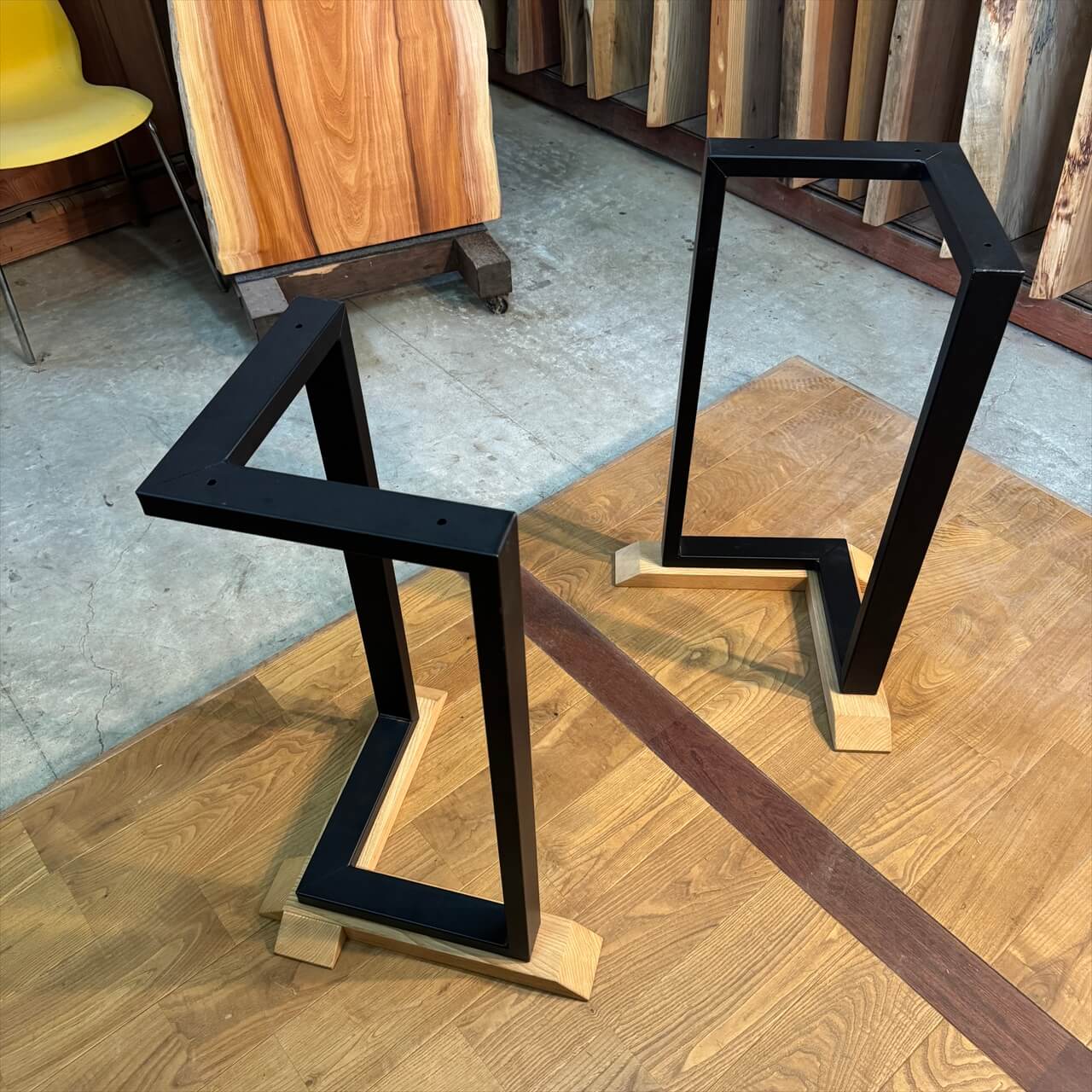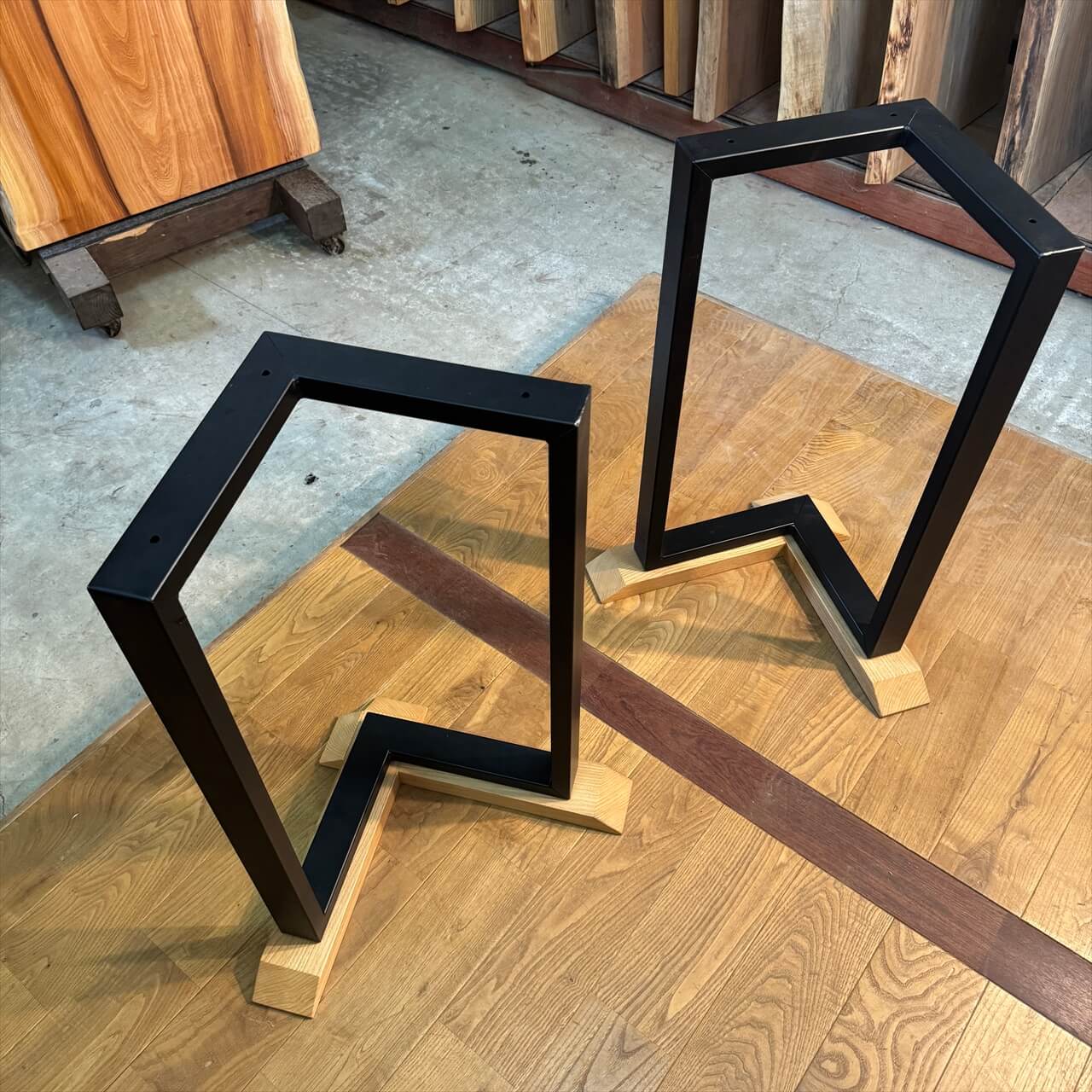 巾の狭い一枚板にぴったりのアイアン脚が登場しました。