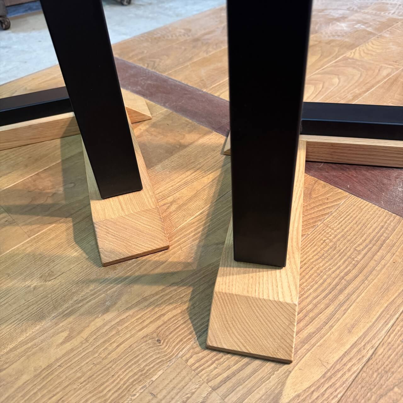 鉄の力強さに木の温もりが加わることで、天板の存在感をより際立たせてくれます。