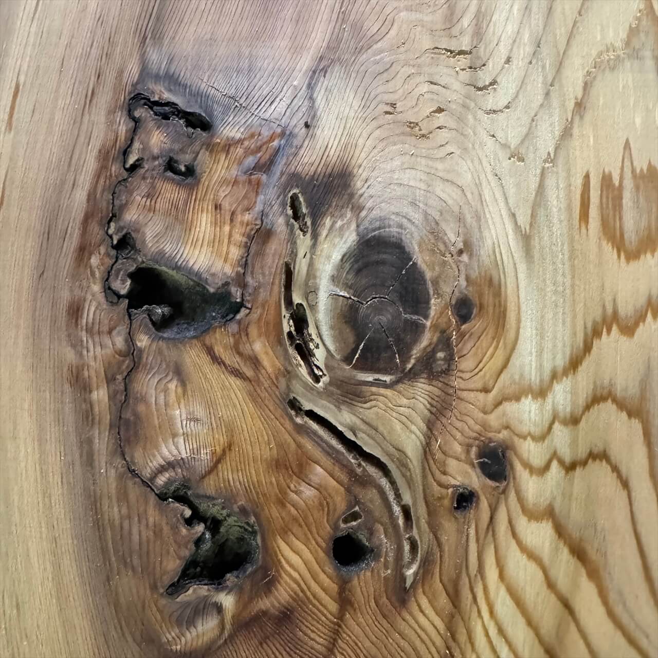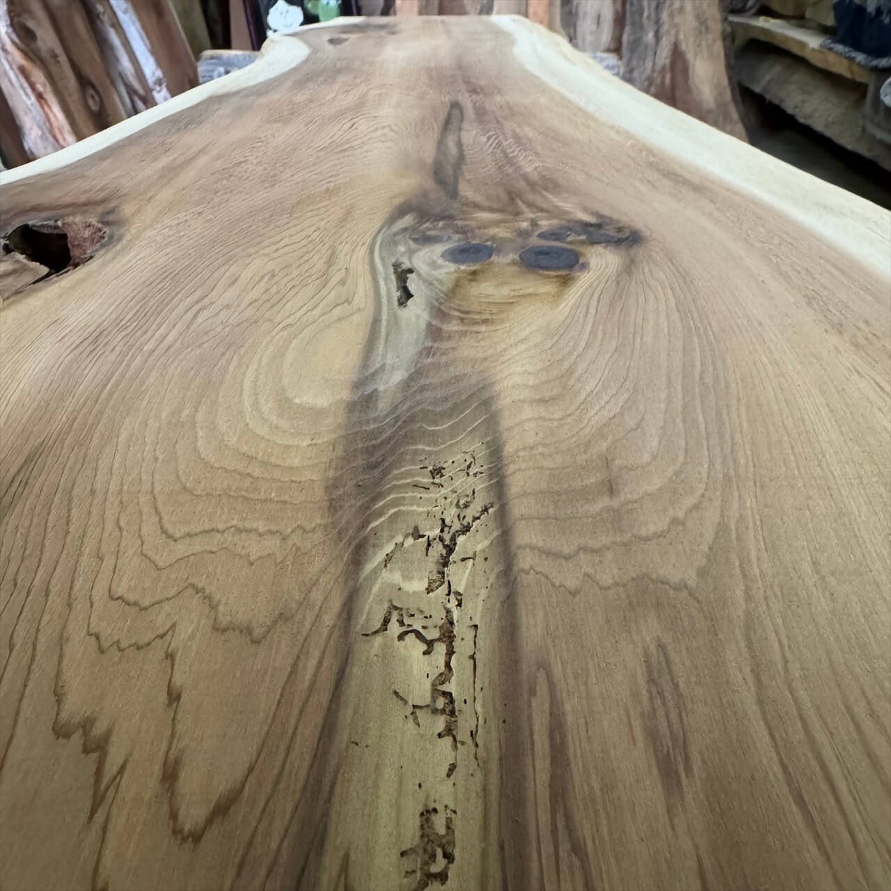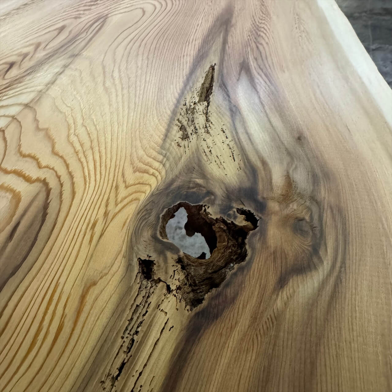 節やワレ、カケ、虫の空けた穴などもデザインや嗜好の一部として、既製品にはない自然素材にこそある味、とご理解していただきたく思います。