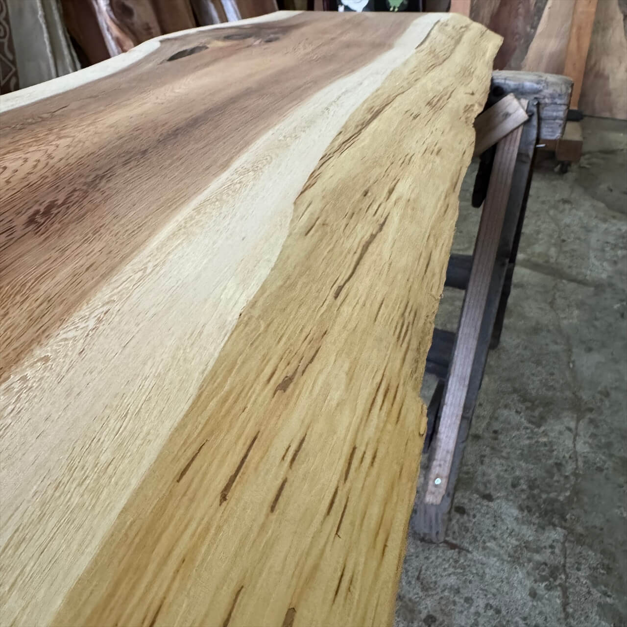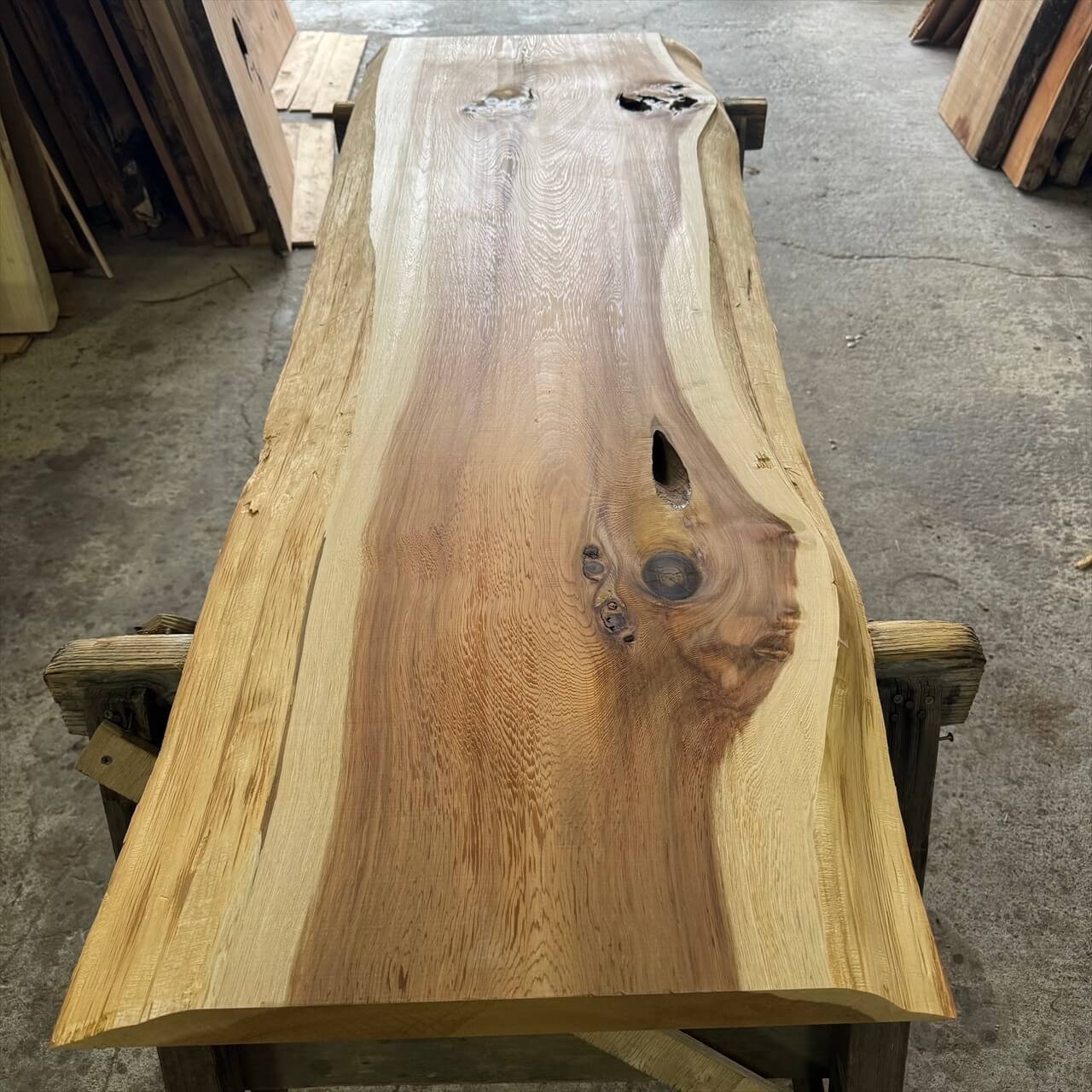 一枚板の両木口をカットしています。