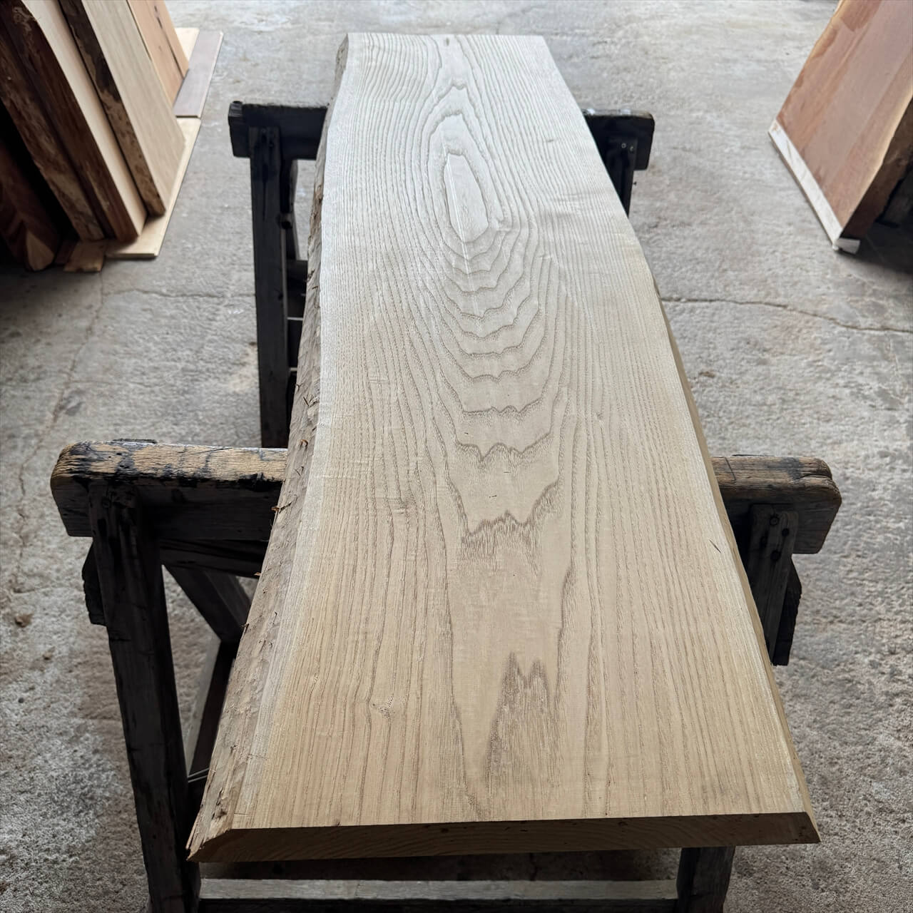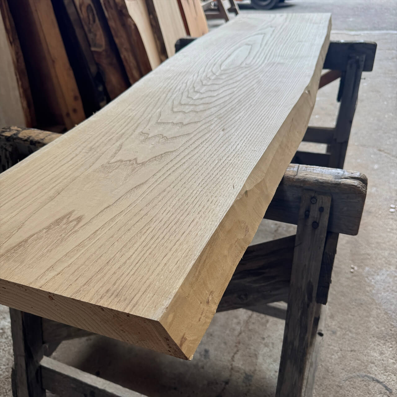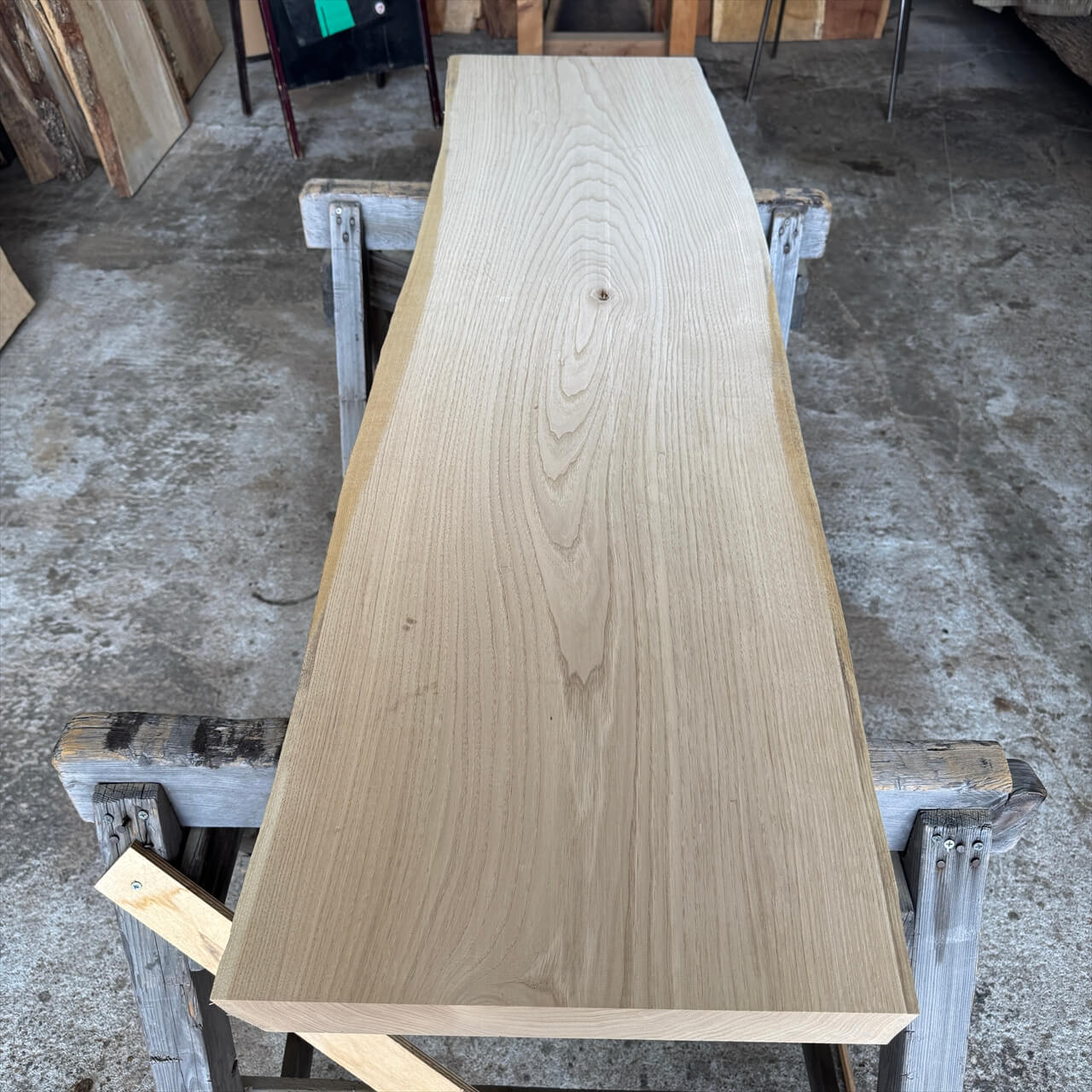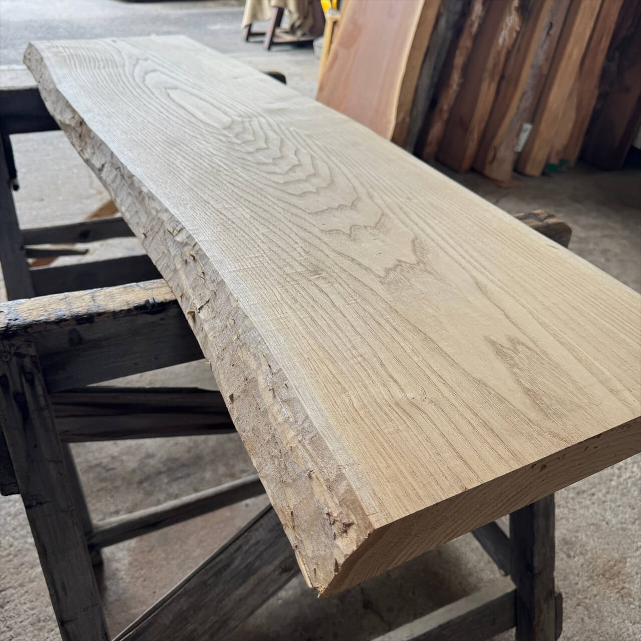 一枚板の両木口をカットしています。