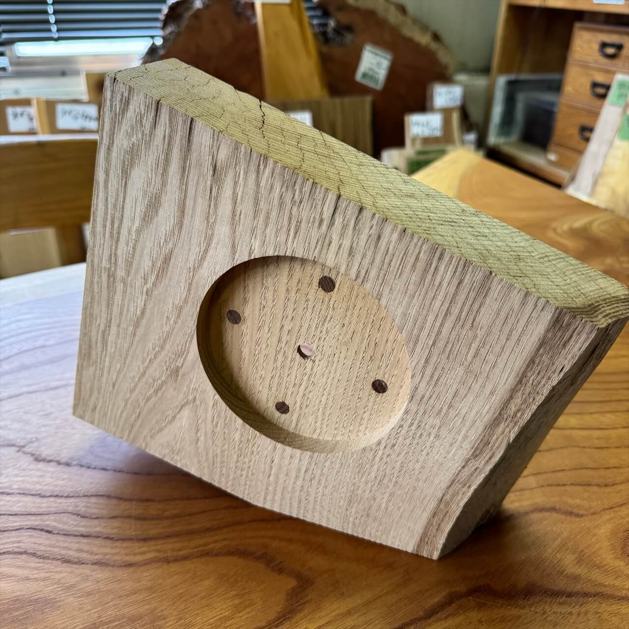 この時計は、製材や家具製作で切り落とされた小さな端材から生まれました。割れや虫穴など、木が歩んできた証をあえて残し、手を加えすぎず自然のままの風合いを大切にしています。デジタル全盛の時代に、アナログ時計が刻むわずかな“ずれ”もまた、暮らしの中の豊かな時間として楽しんでいただけます。