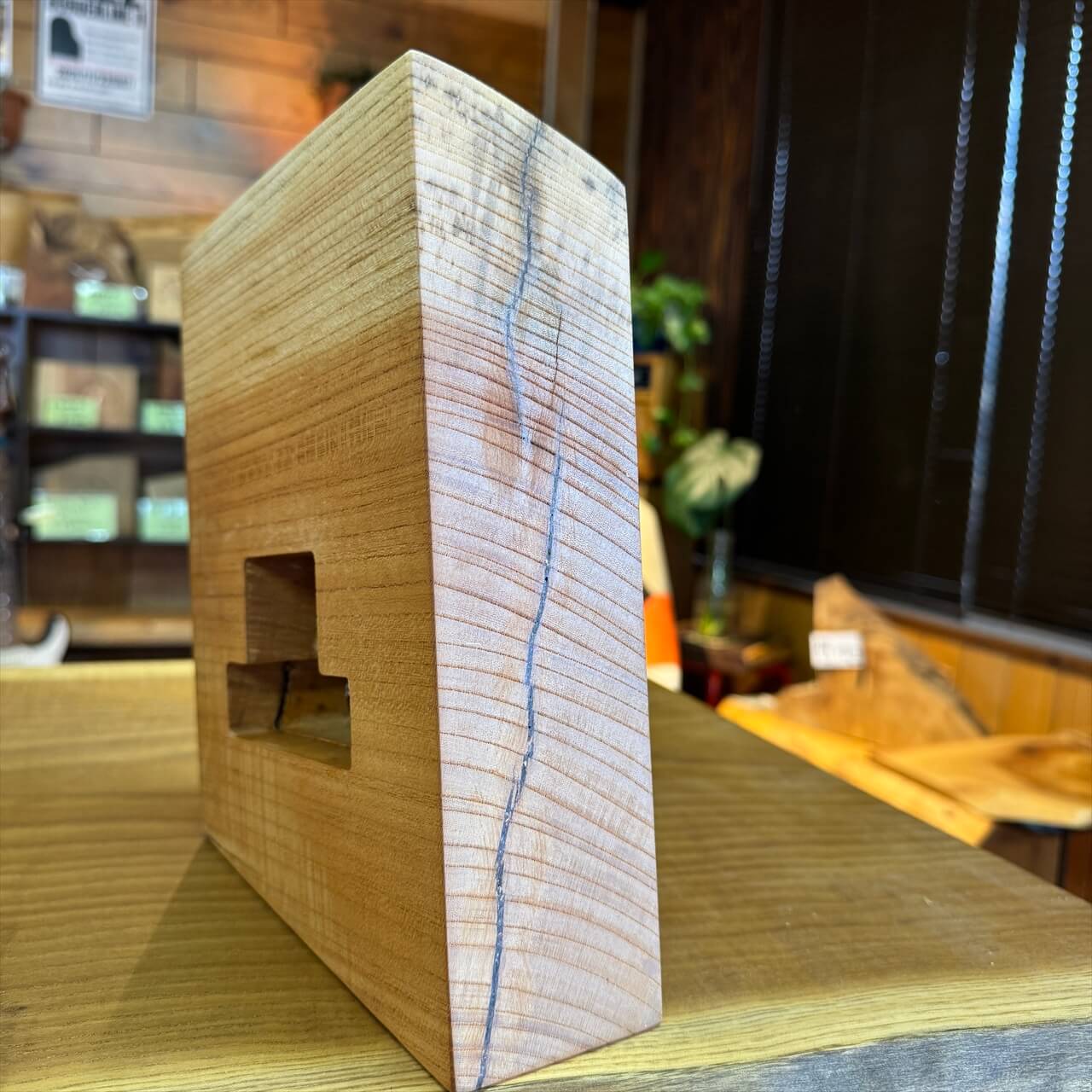 天然木ゆえに、初めから割れ・反り・キズ・虫穴が見られる場合があります。これらは自然素材の魅力であり、既製品にはない“木そのものの物語”とご理解ください。