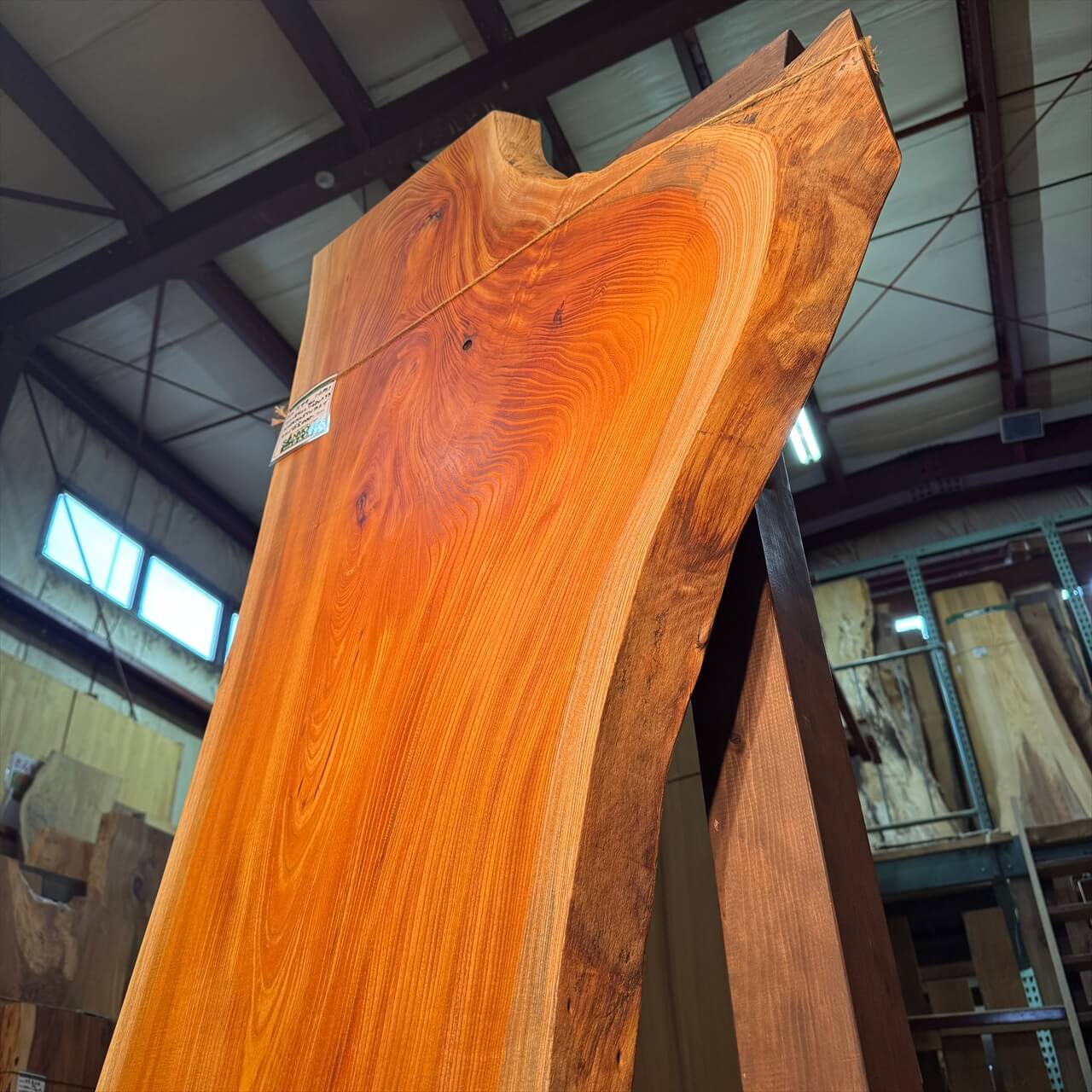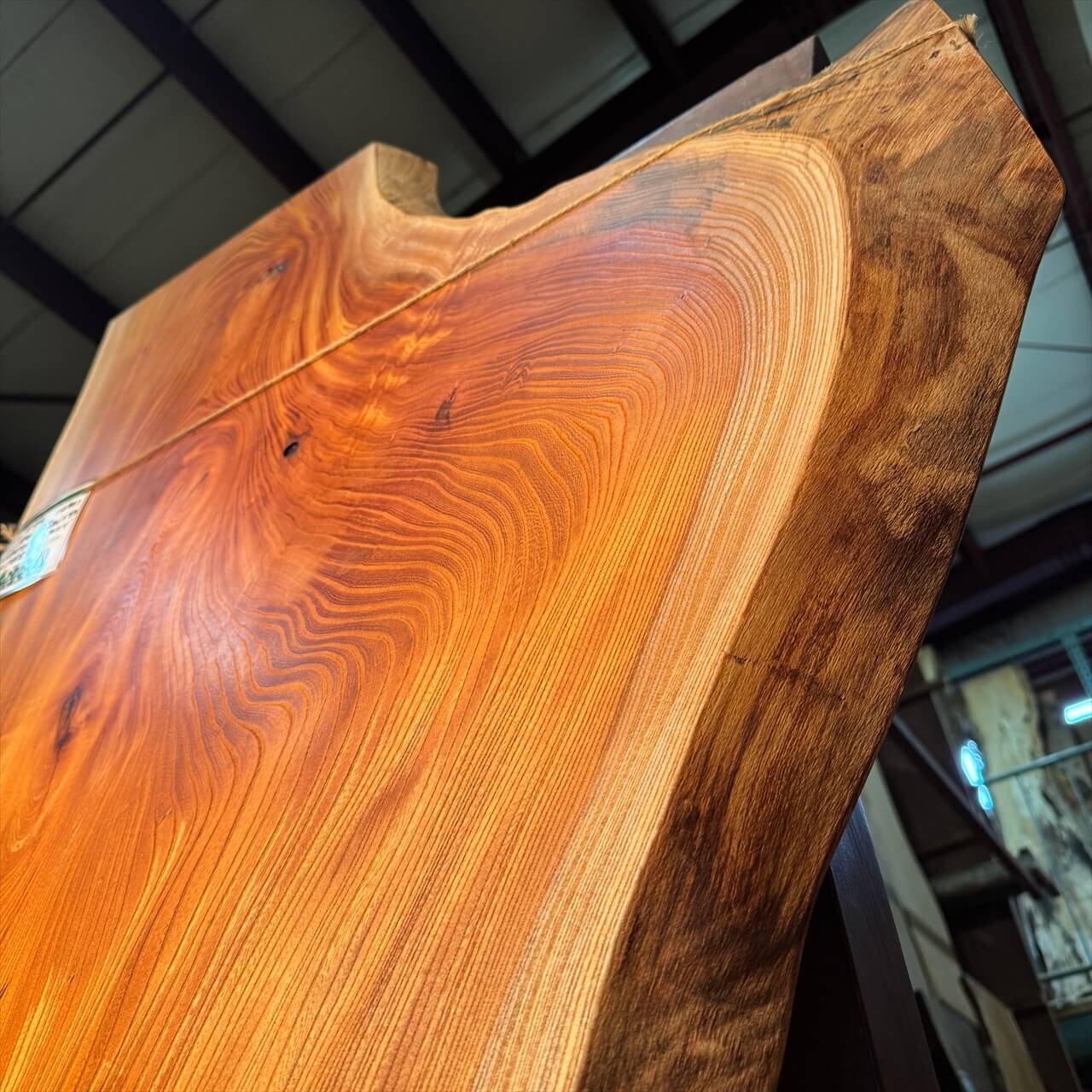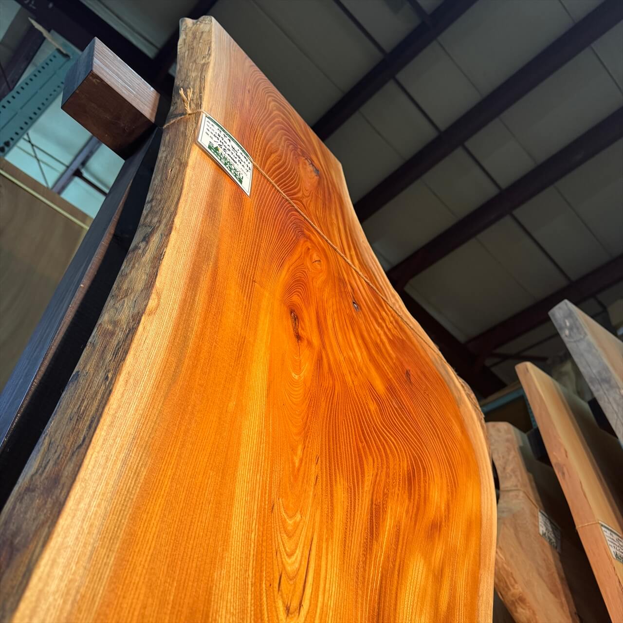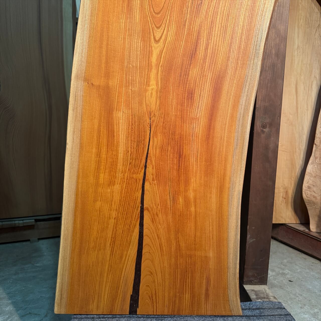 クリーム色の白太には青シミが走り、耳の表情も豊かで表面に負けないワイルドな景色を楽しめます。