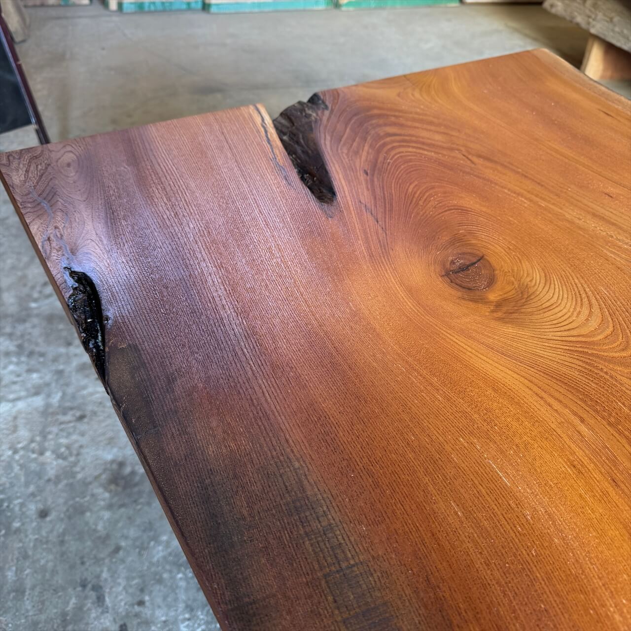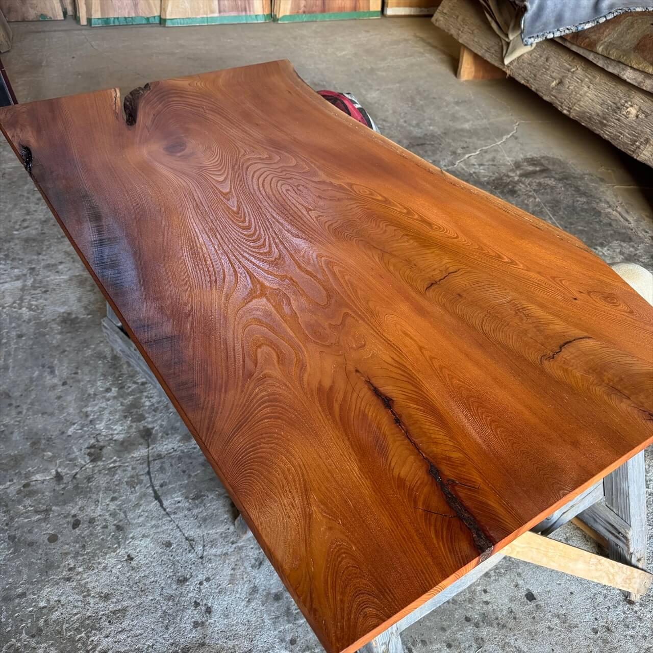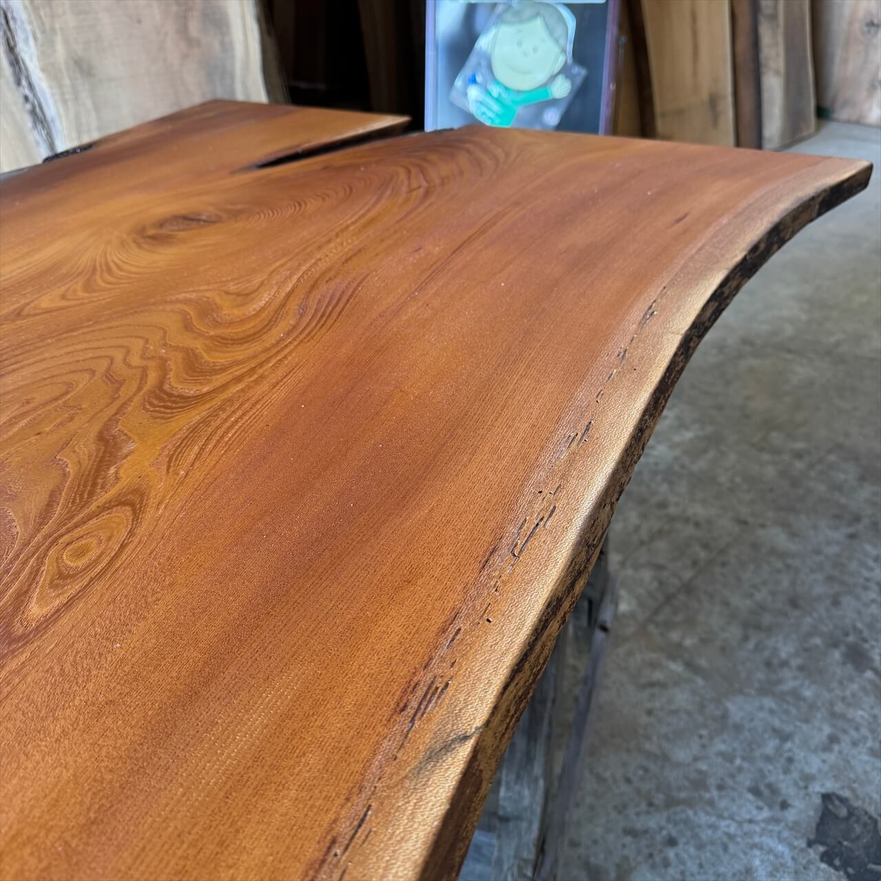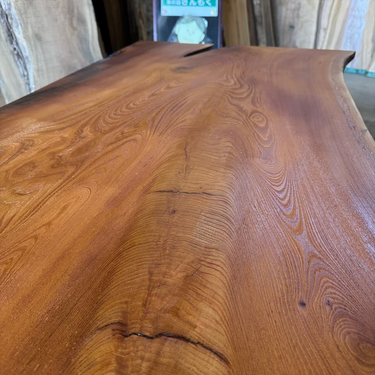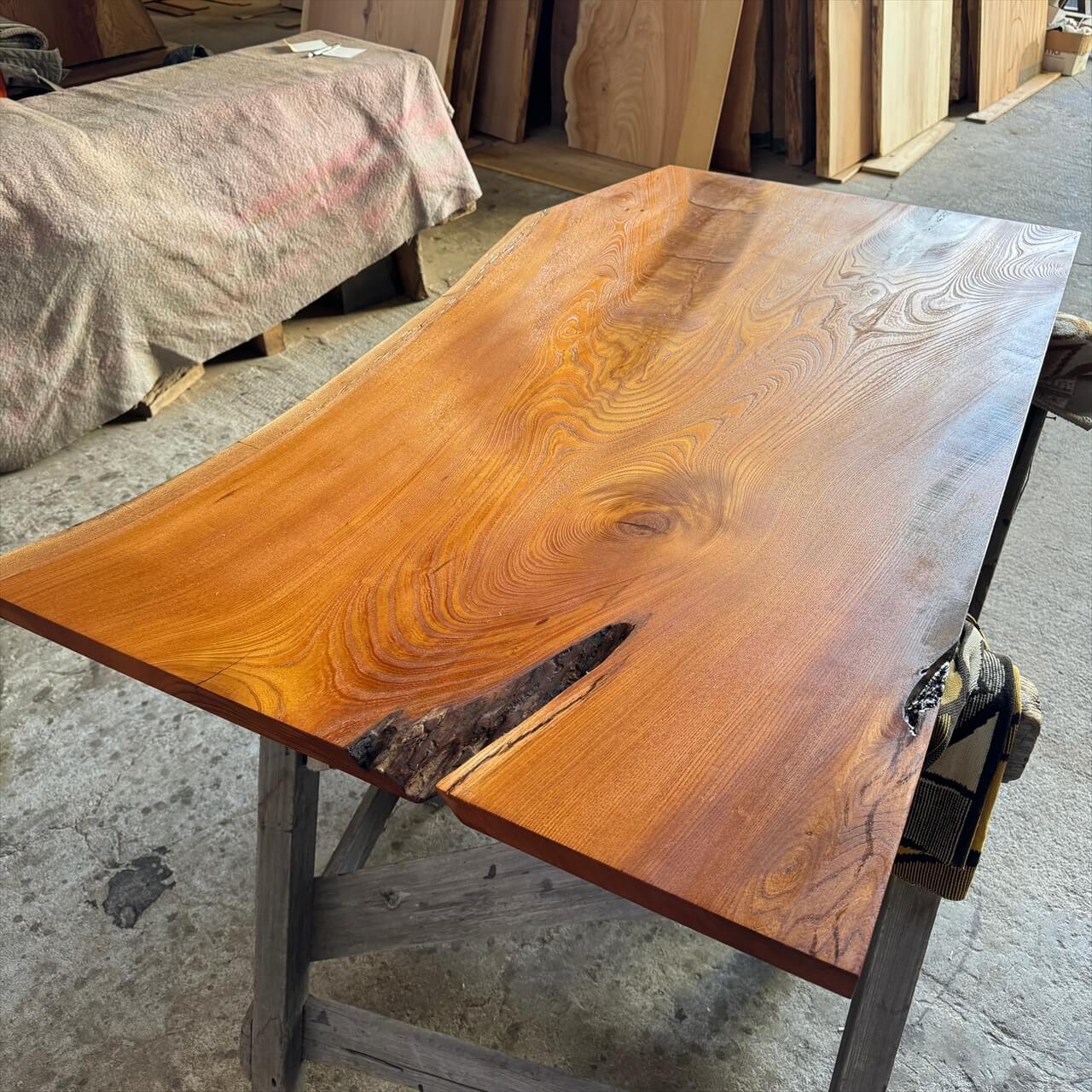 厚みが薄く、カタチが面白い老木ケヤキ一枚板