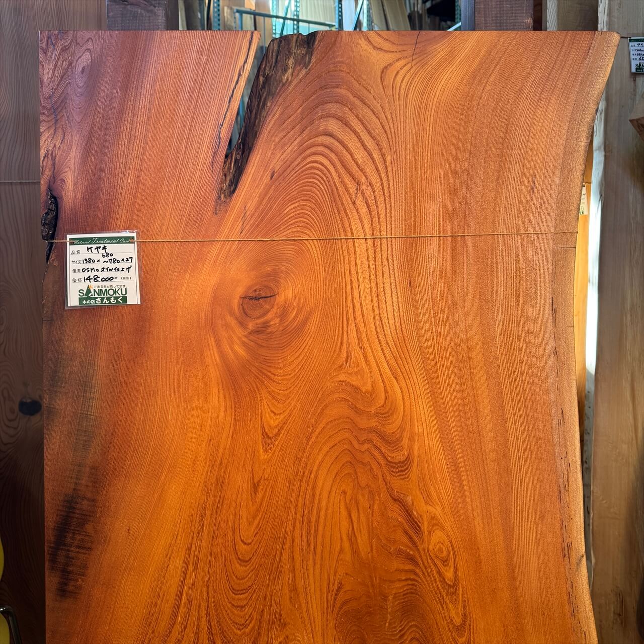 けやき一枚板 1380×680~780×27㎜【オイル塗装 仕上げ済み】