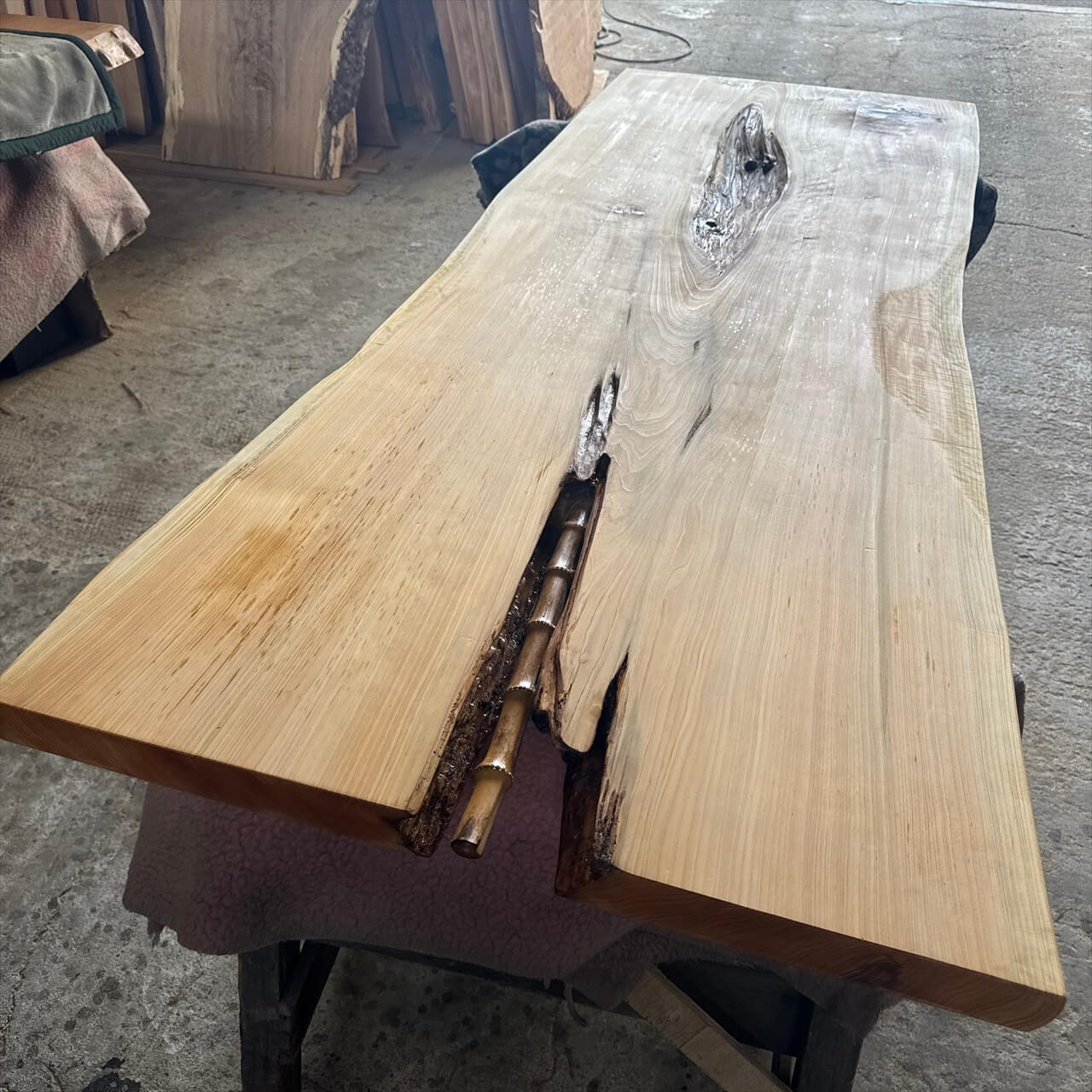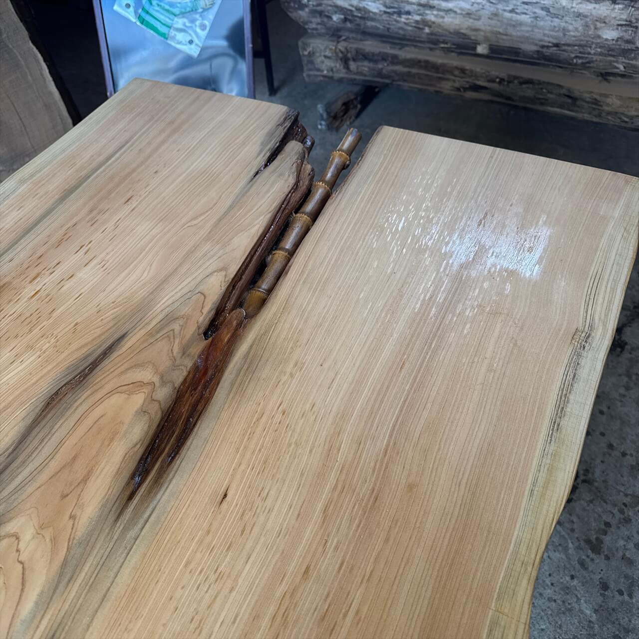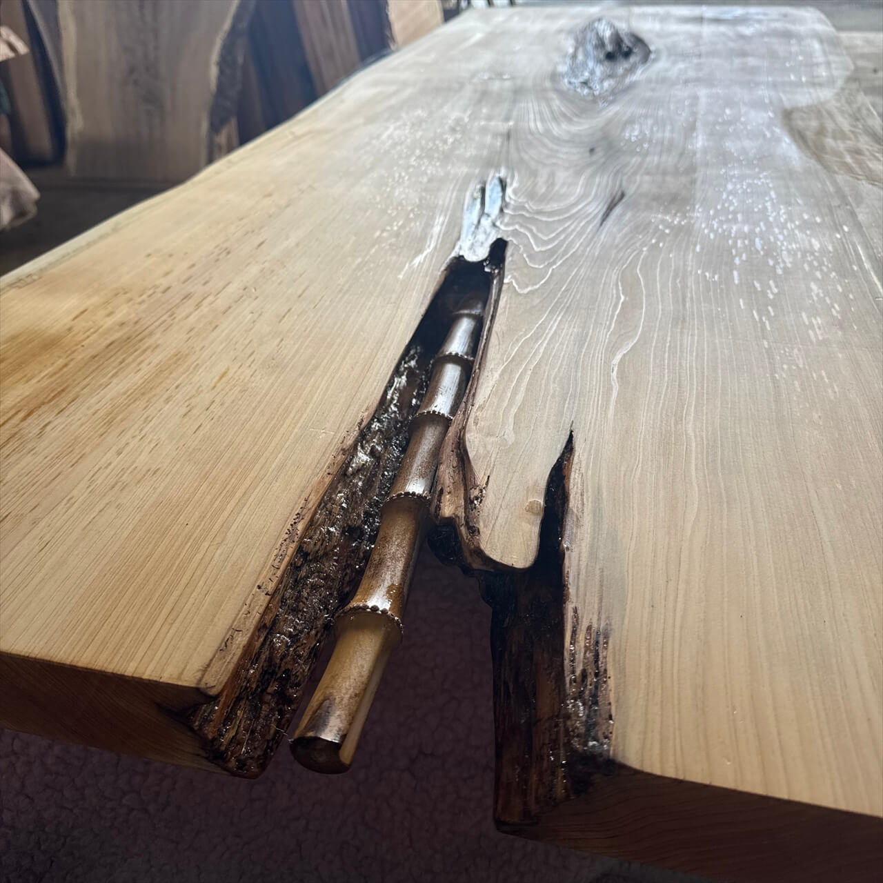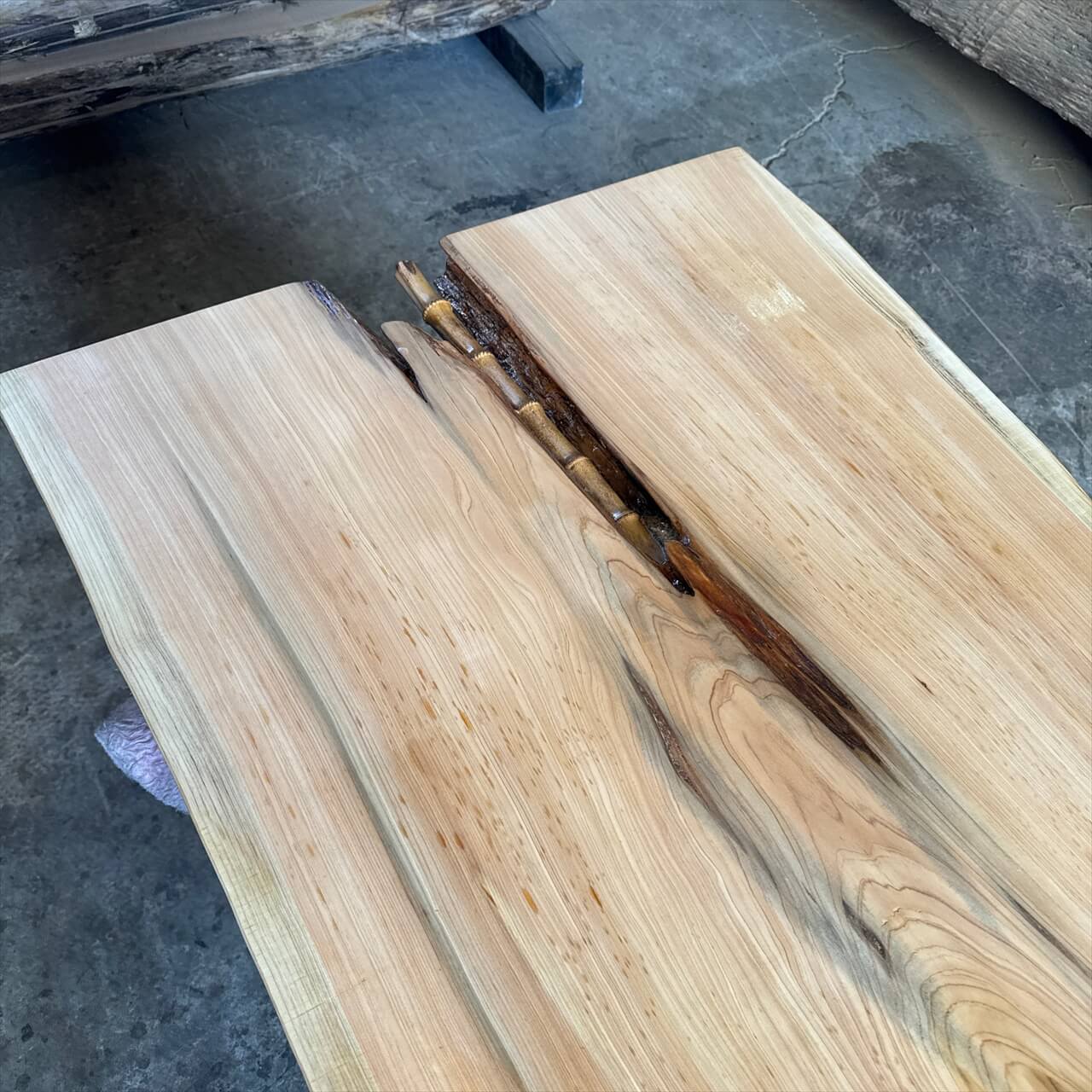 こんなことある!?一枚板の中に竹が入った!岩手県産サワラ一枚板