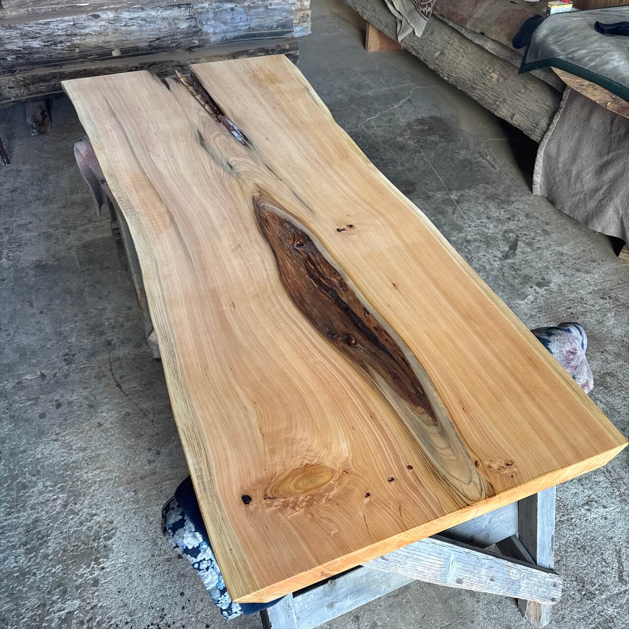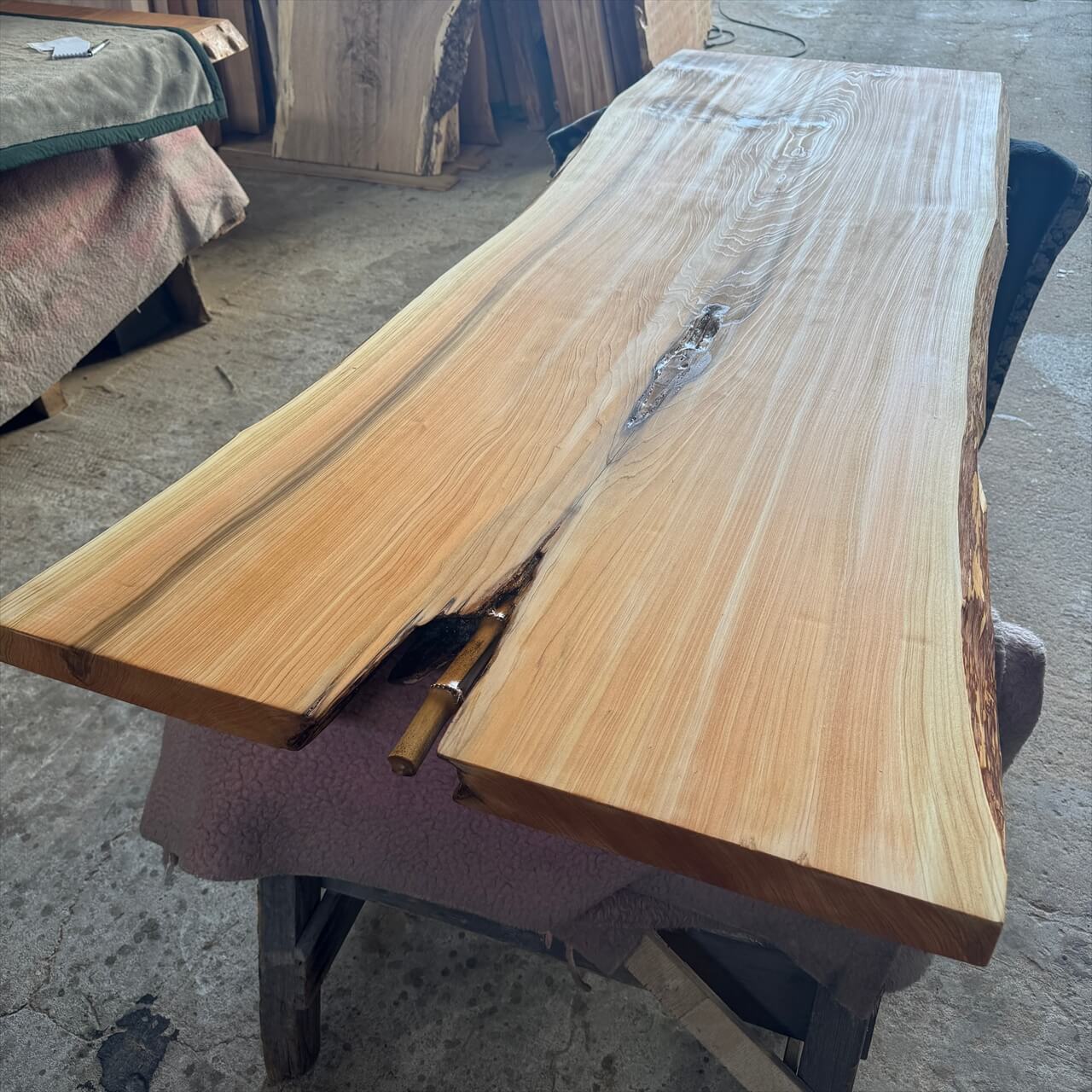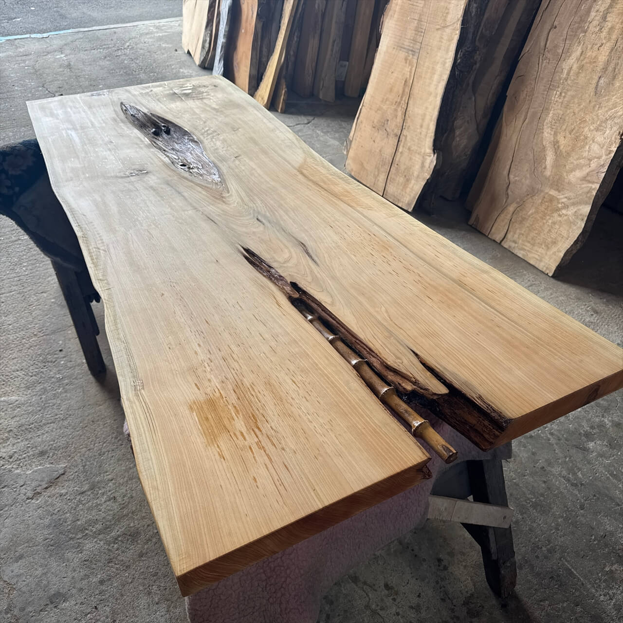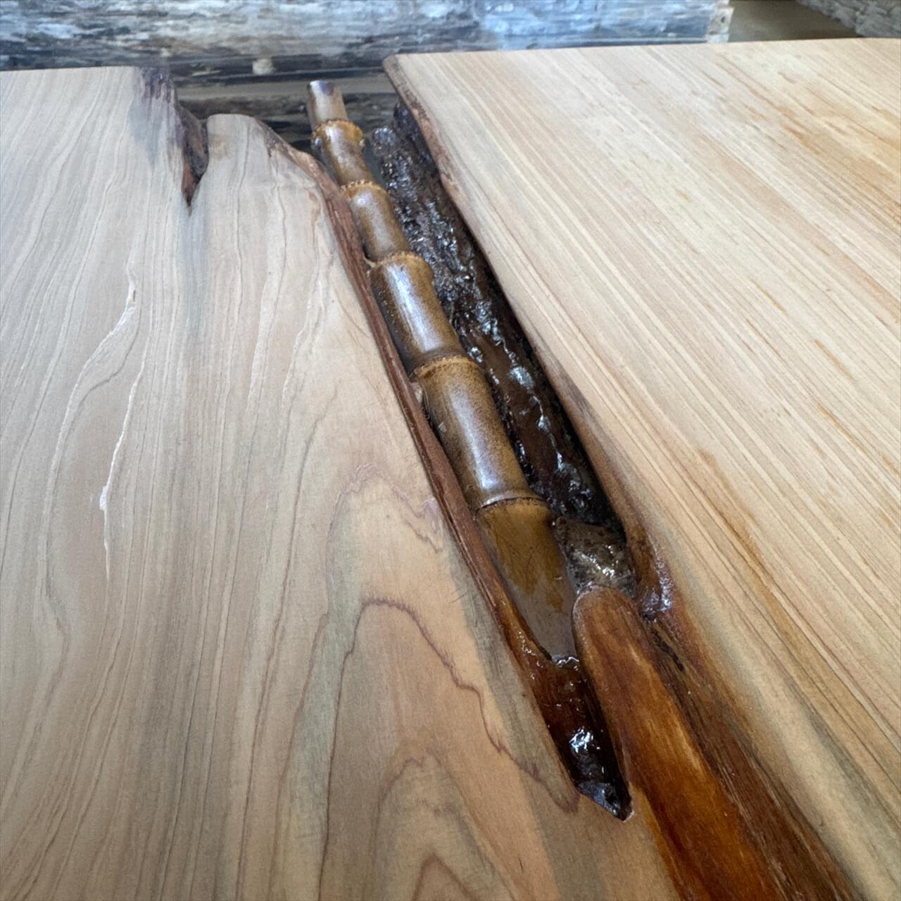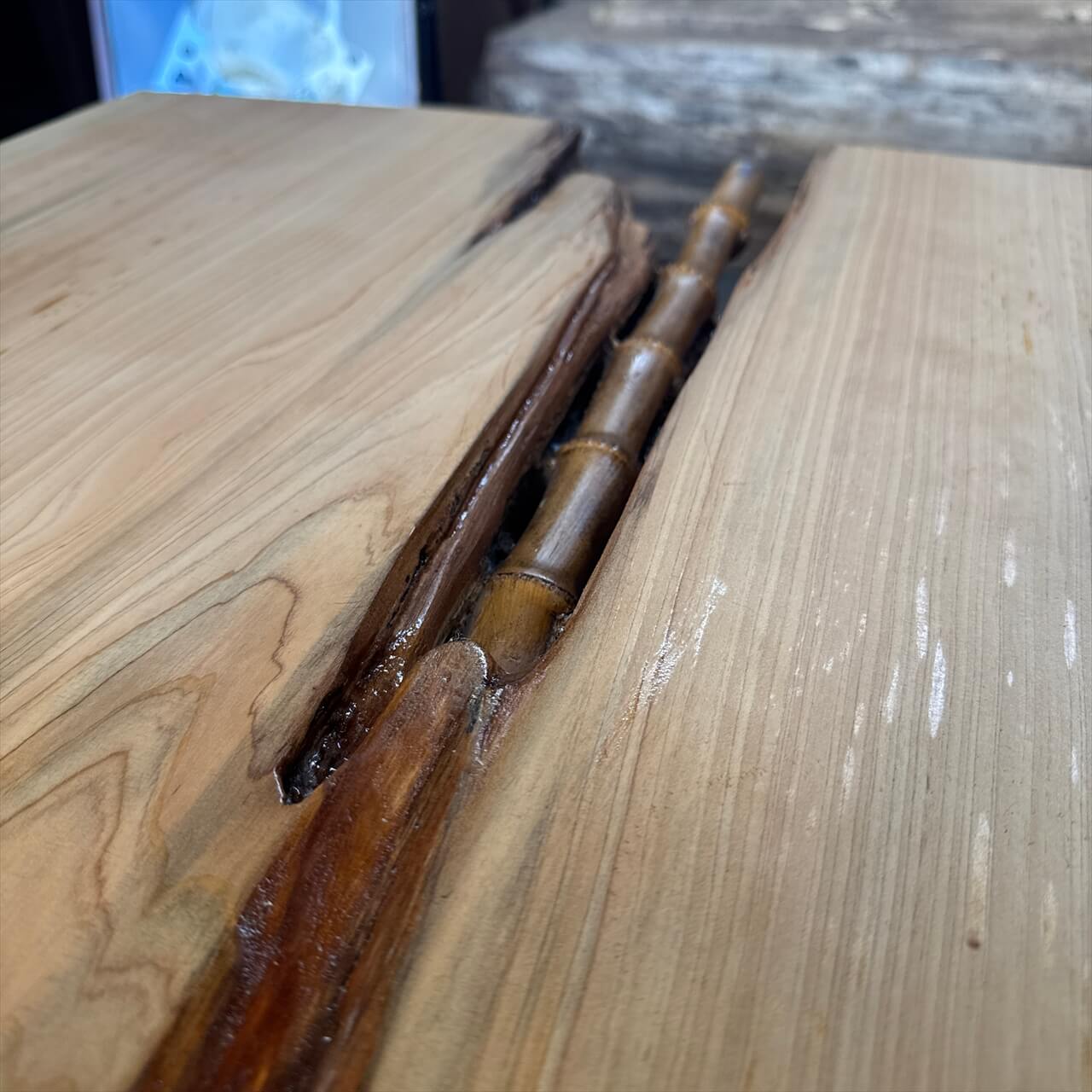 こんなことある!?一枚板の中に竹が入った!岩手県産サワラ一枚板