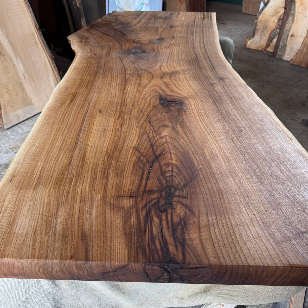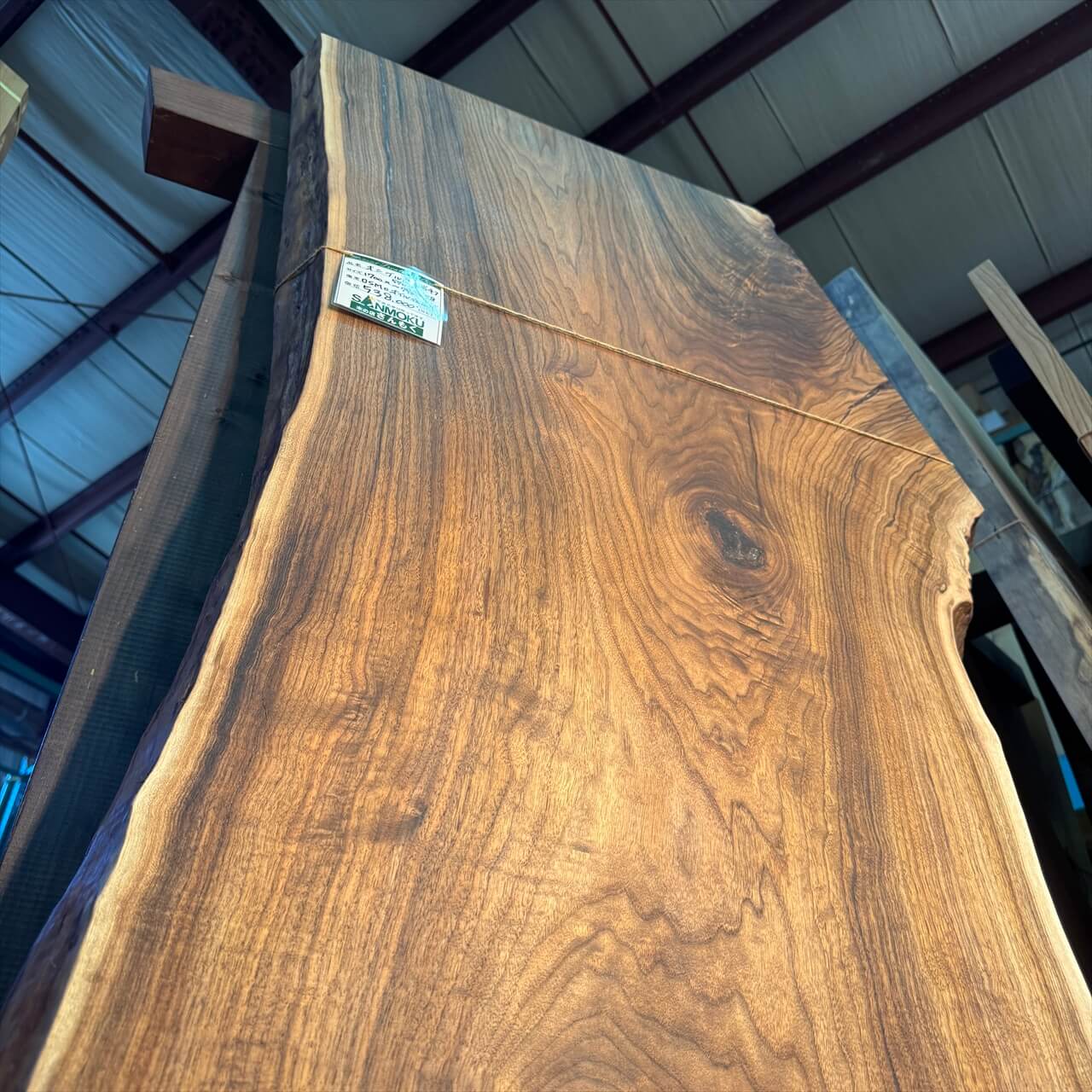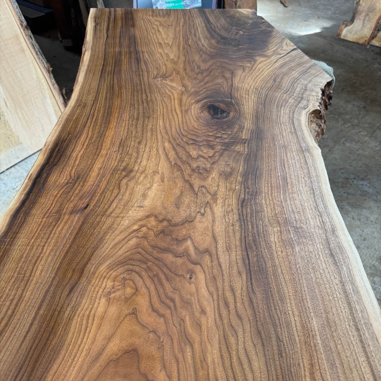 独特な濃さの赤身に目を奪われる、岩手県産オニグルミ一枚板