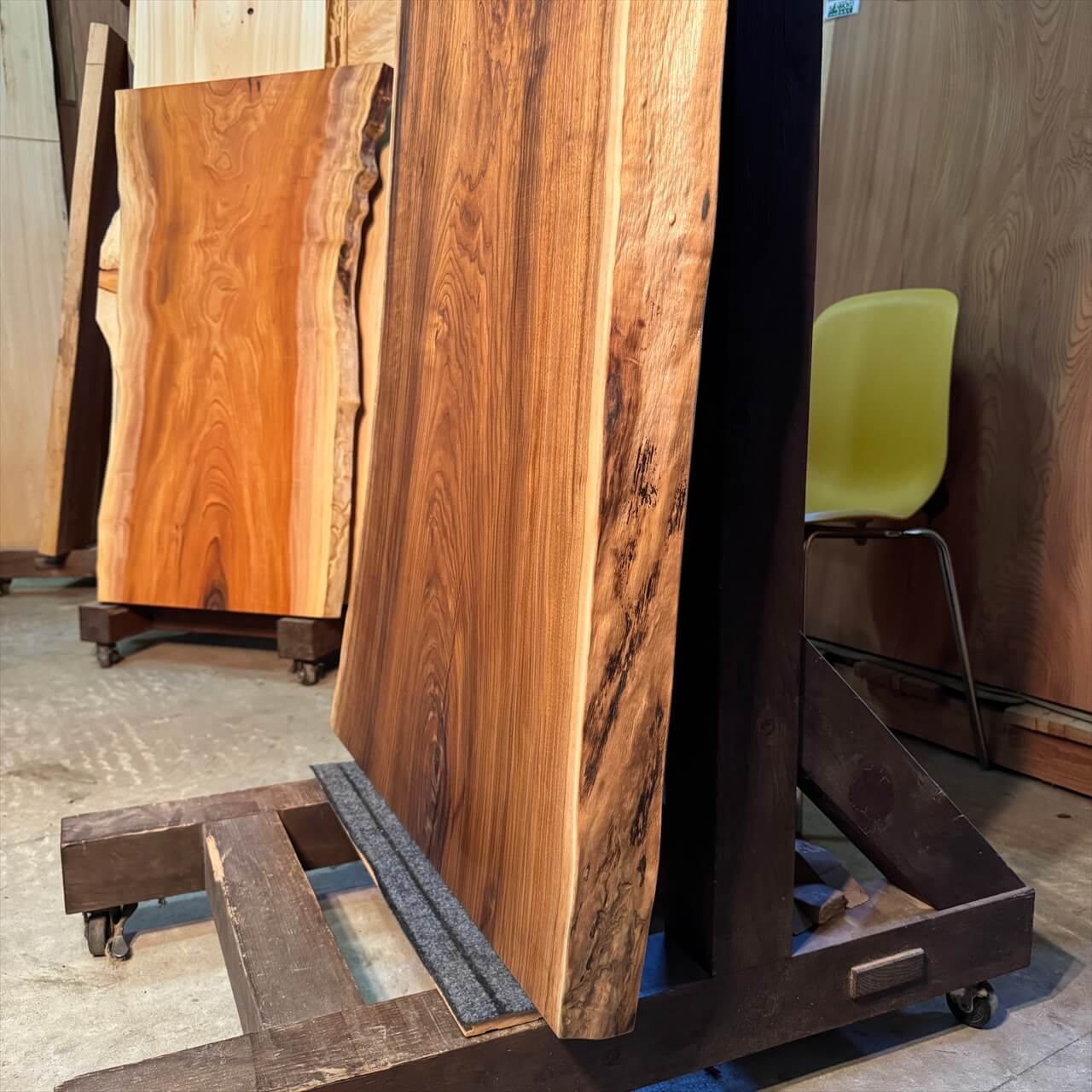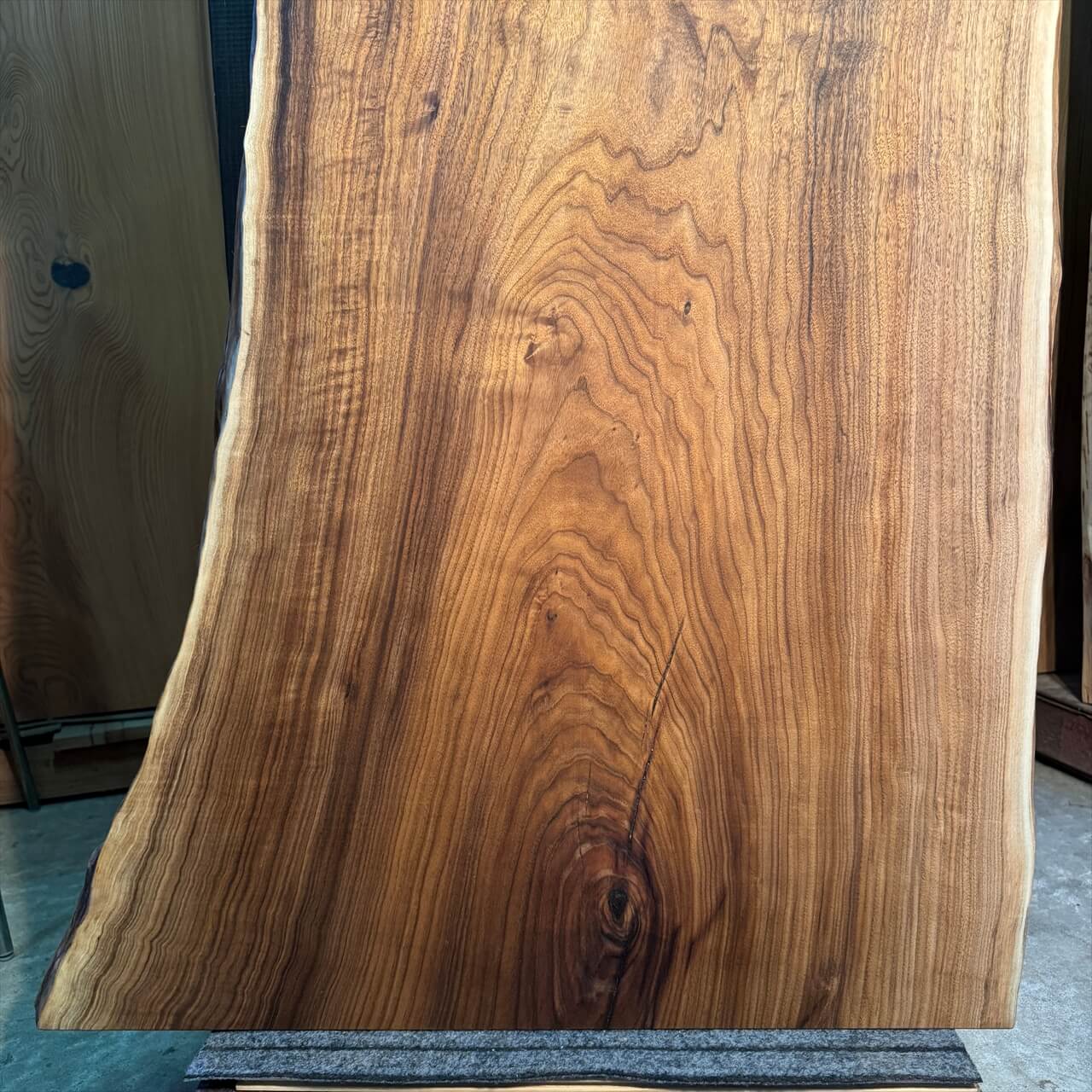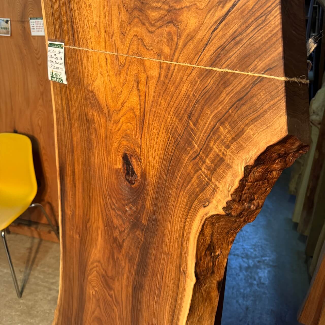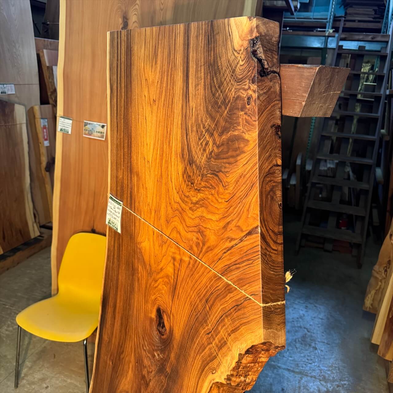 独特な濃さの赤身に目を奪われる、岩手県産オニグルミ一枚板