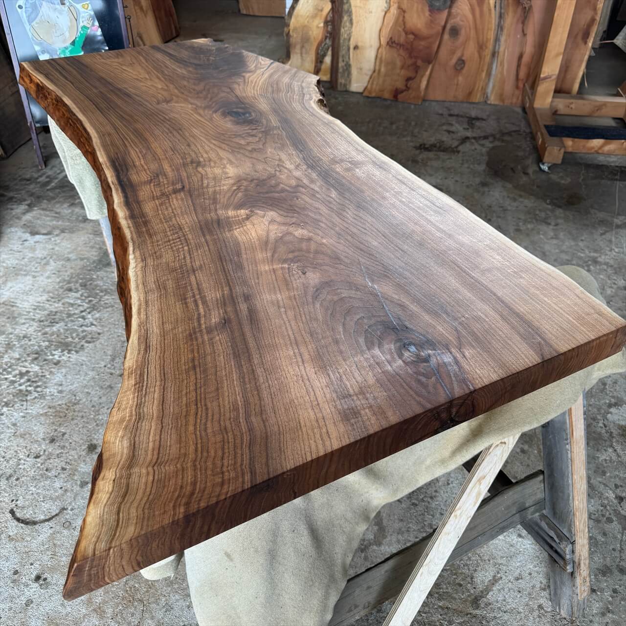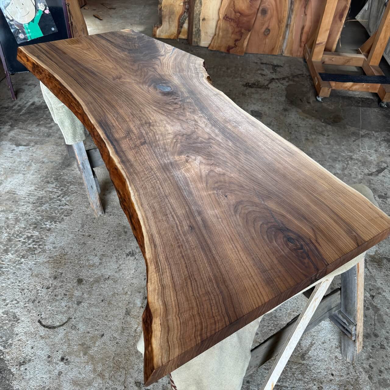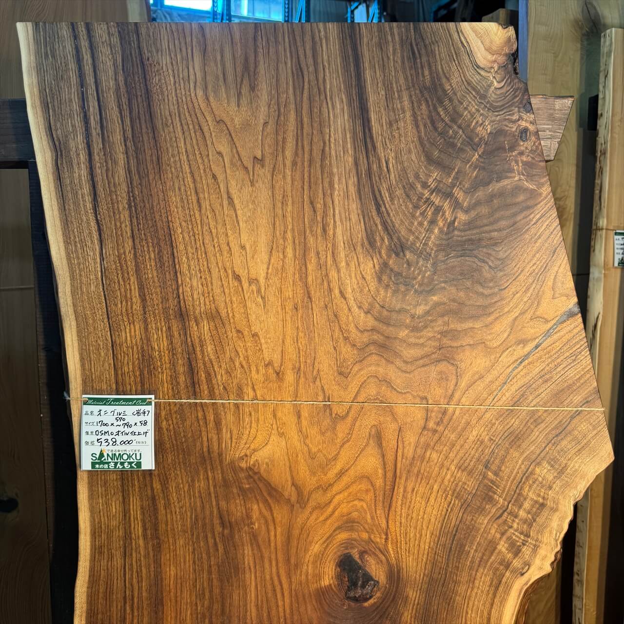オニグルミ一枚板【岩手】1700×570~790×58㎜【オイル塗装 仕上げ済み】