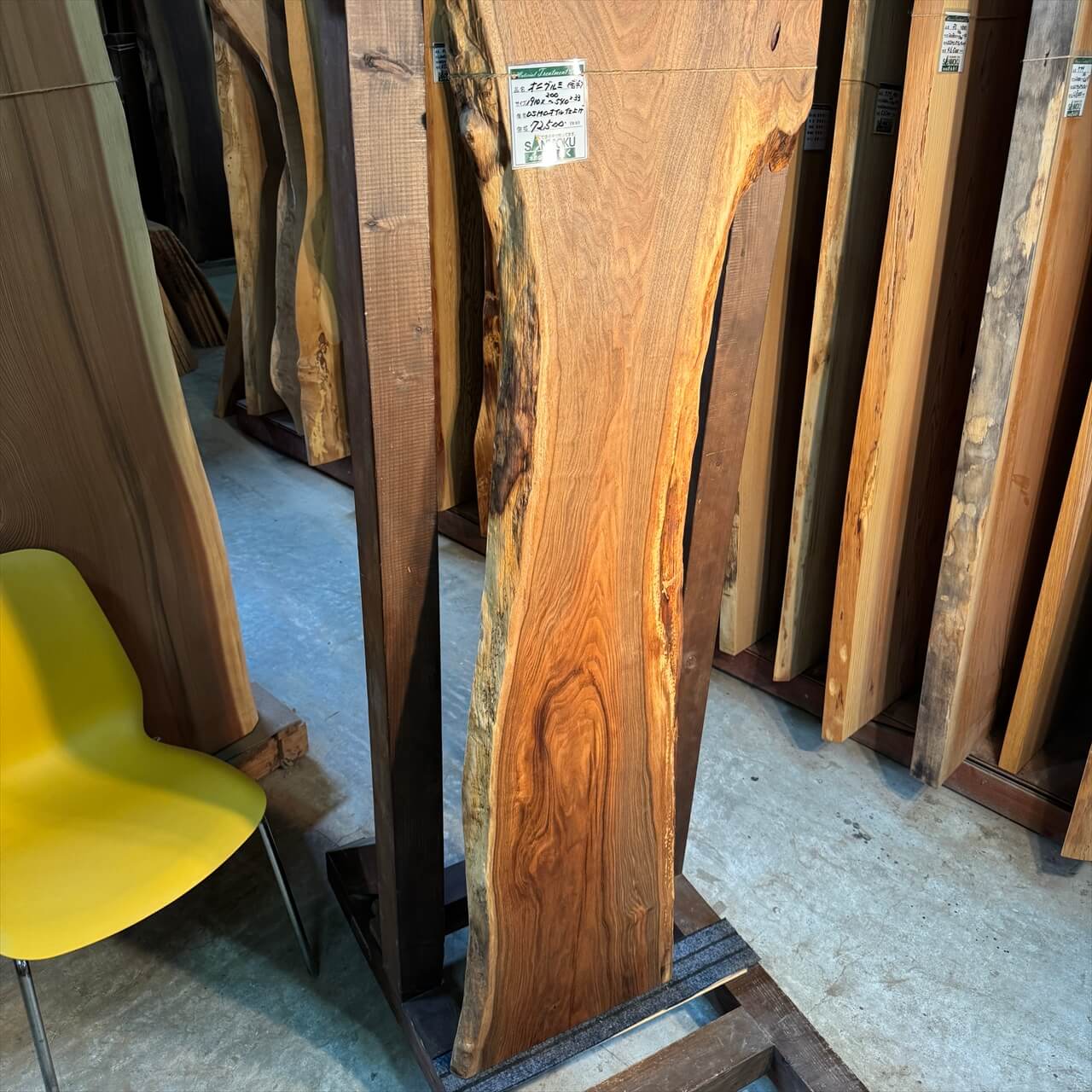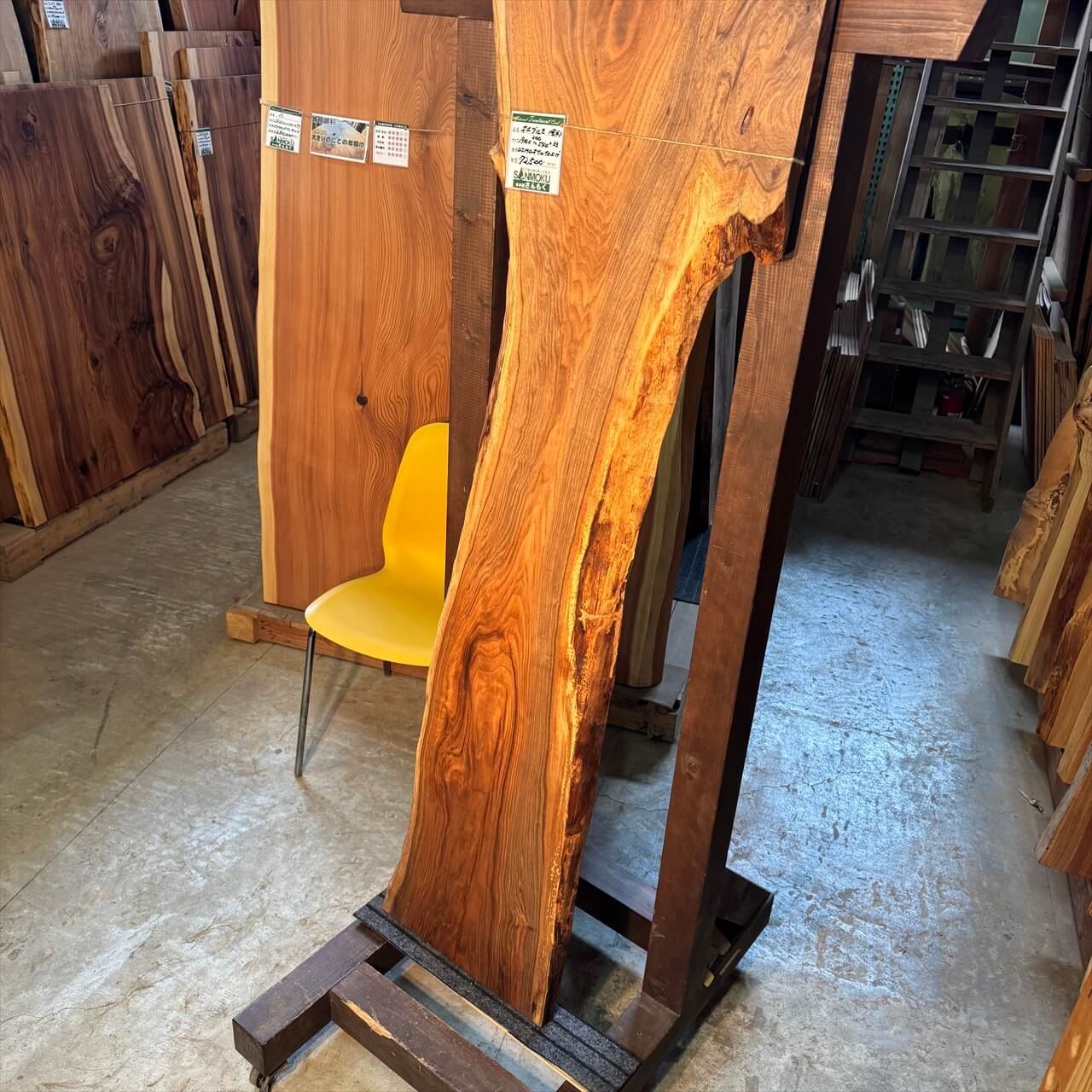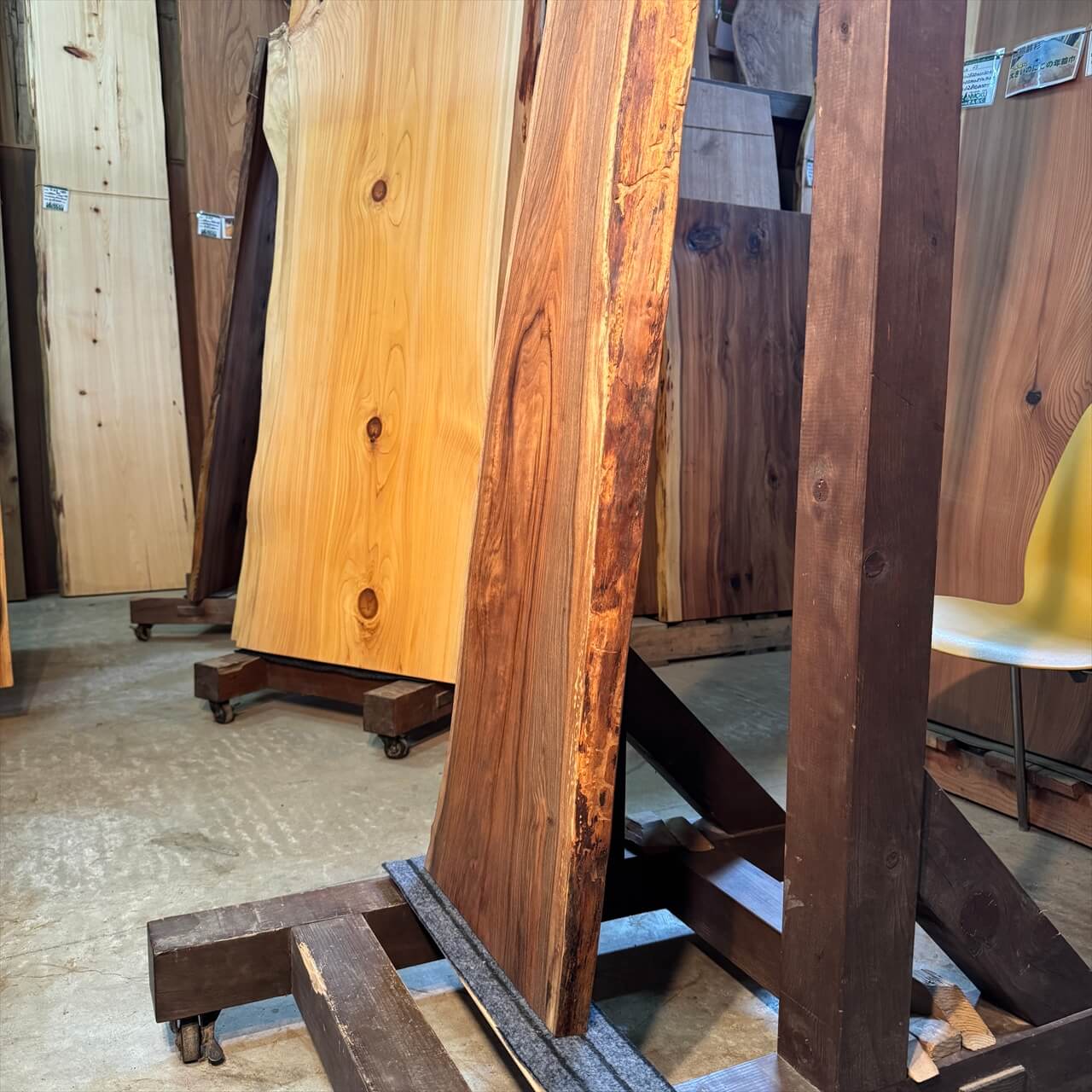 独特の赤身と、縦横に走る虫食いの痕跡。巾が広いところと狭いところが面白みある形となって目を引きます。