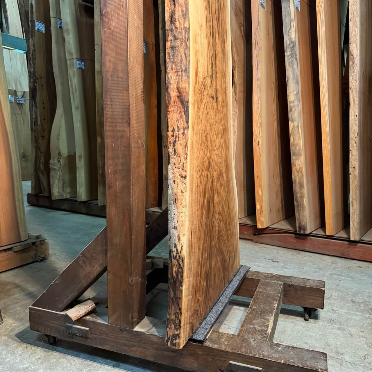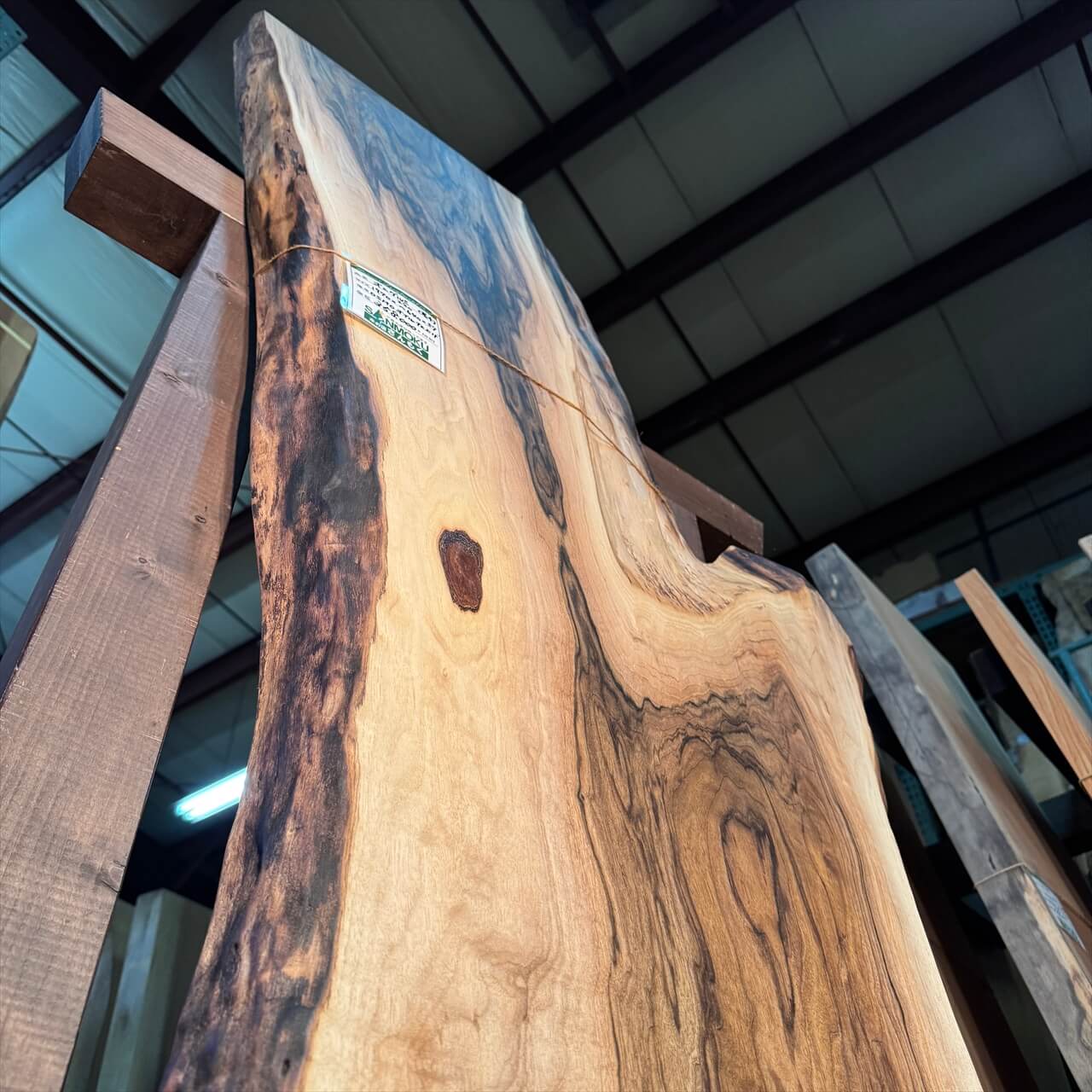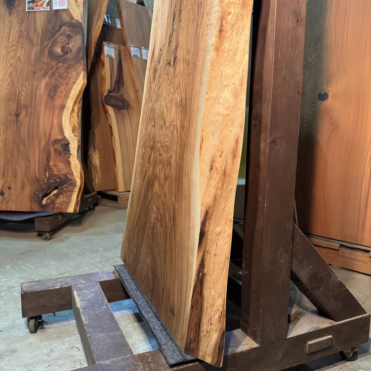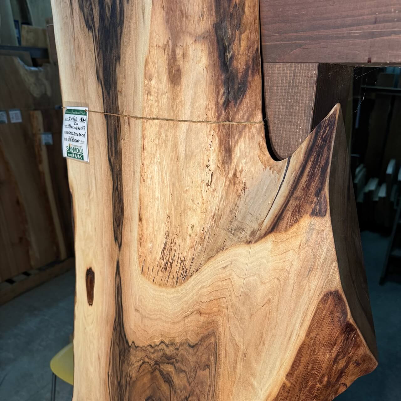 オニグルミの中でも珍しい独特の“濃さ”を纏った色味がひと目で目を惹きつけ、赤身と白太が描く力強いコントラストが抜群の存在感を放ちます。