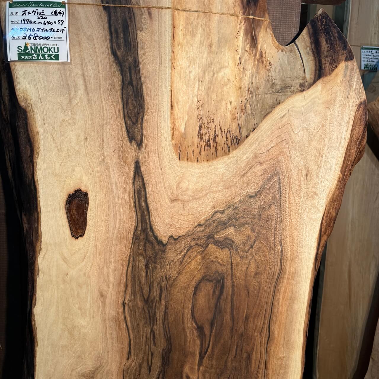 オニグルミ一枚板【岩手】1970×220~640×57㎜【オイル塗装 仕上げ済み】