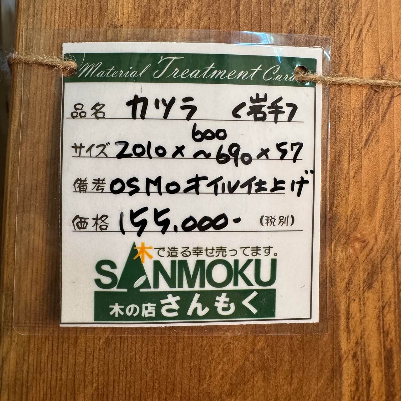 カツラ一枚板【岩手】2010×600~690×57㎜【オイル塗装 仕上げ済み】