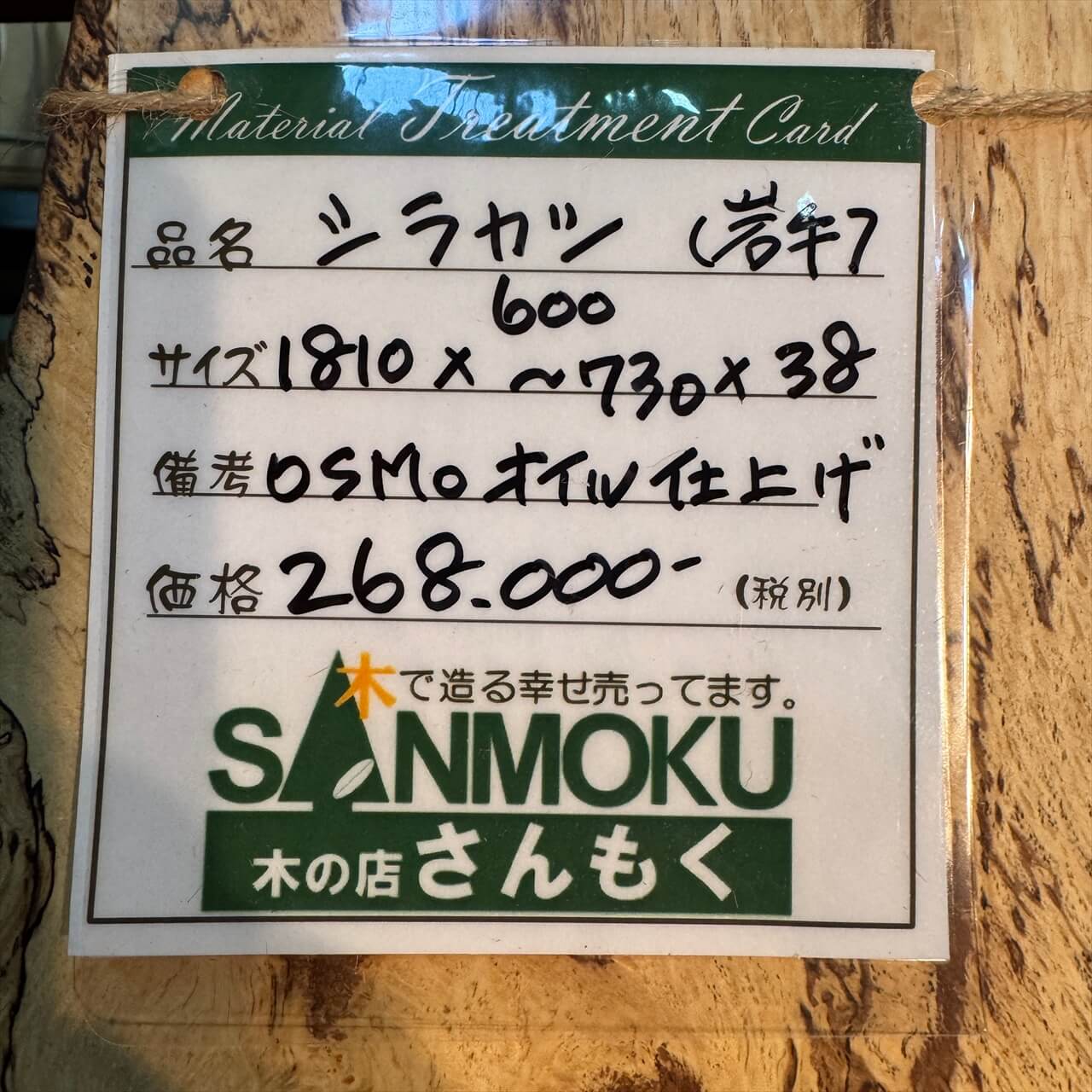 オイル仕上げの一枚板 専門店|木の店さんもく 岩手