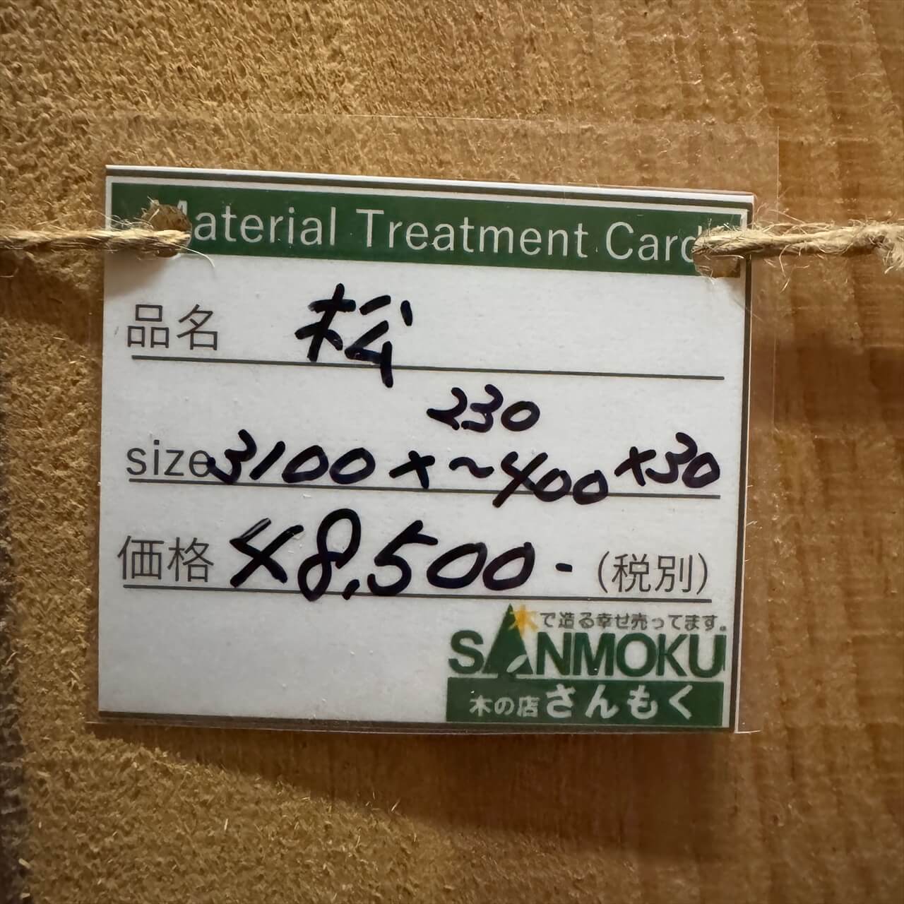 マツ3100×230~400×30㎜【素材荒木の未加工品】